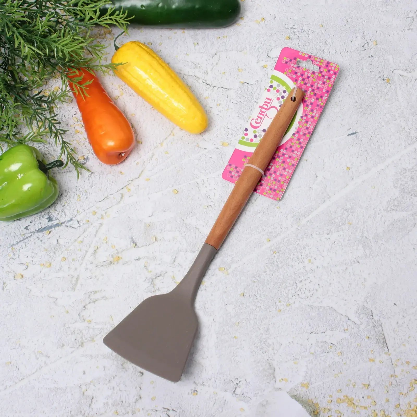 Идеальный выбор для любителей здорового питания: мягкий силикон не царапает поверхность керамических сковородок. Повара оценят широкую рабочую поверхность для переворачивания оладий и блинчиков. Дизайнеры интерьеров отметят стильное сочетание серого силикона с натуральной текстурой дерева.