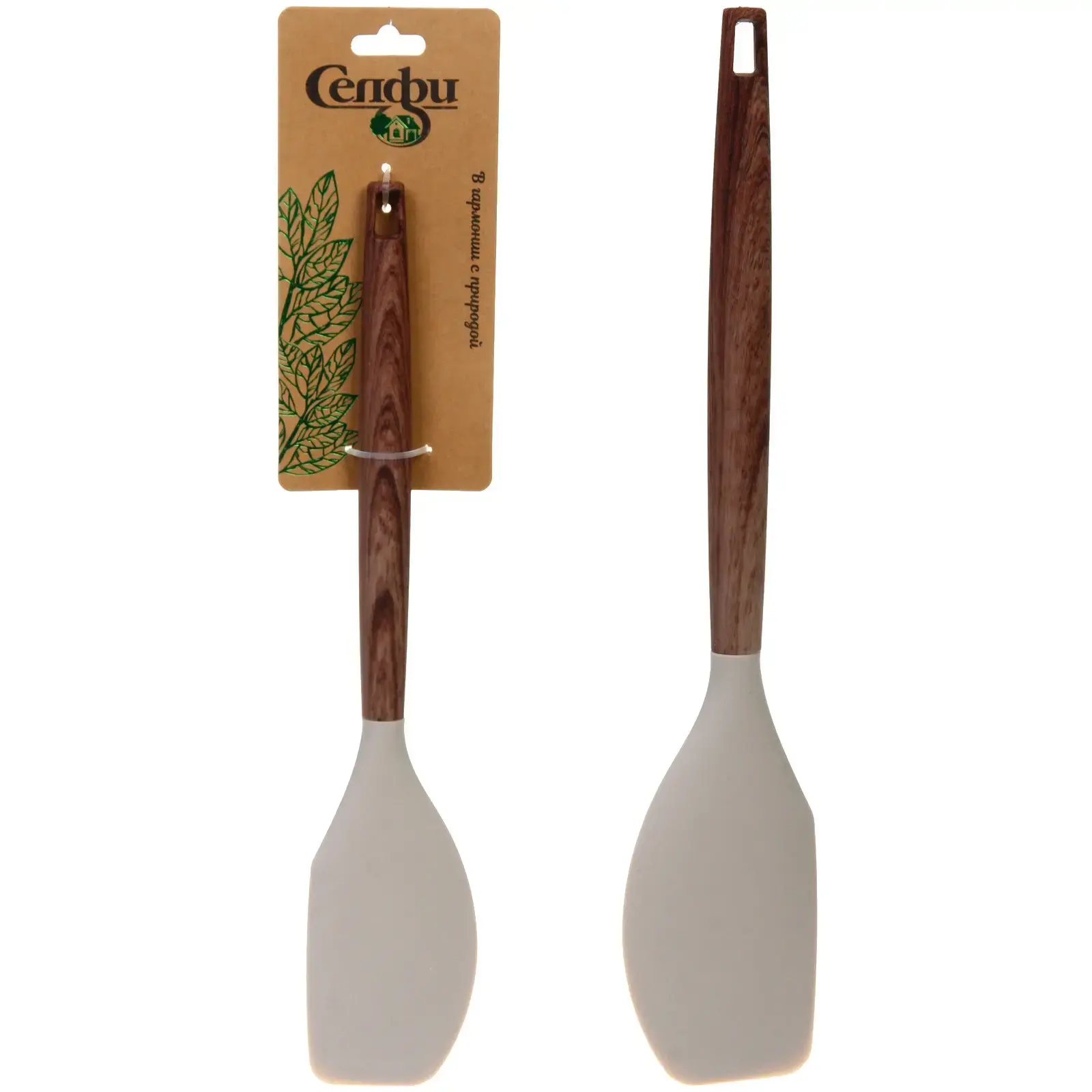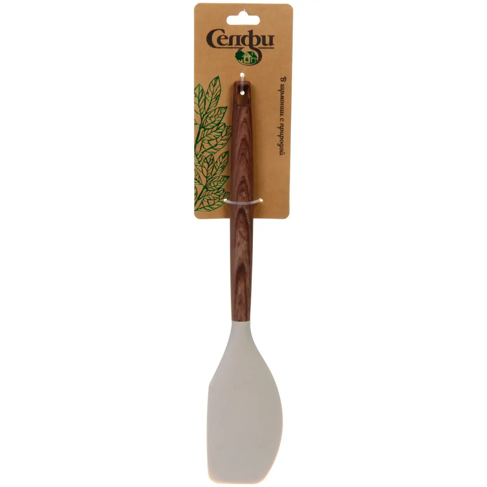 Лопатка кухонная силиконовая 'АМАДЕО' 32см, деревянная ручка, белый/коричневый
