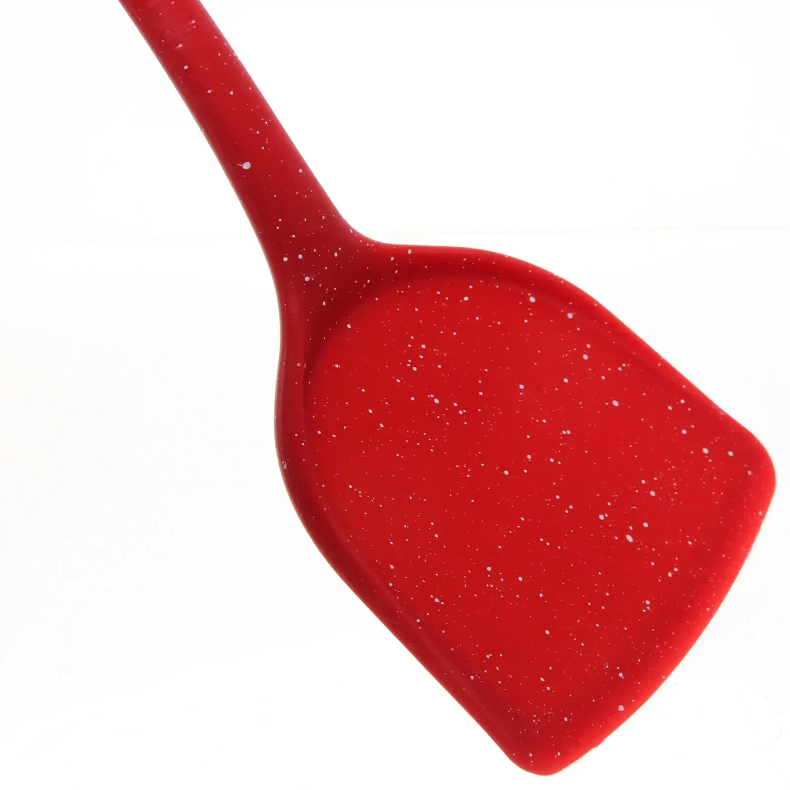 Эта лопатка станет незаменимым инструментом для приготовления и сервировки блюд. Изготовленная из термостойкого силикона, она выдерживает высокие температуры и не впитывает запахи, что делает её идеальной для использования на любой кухне. Яркий красный цвет с белыми вкраплениями добавляет эстетики и стиля в ваш кухонный интерьер.