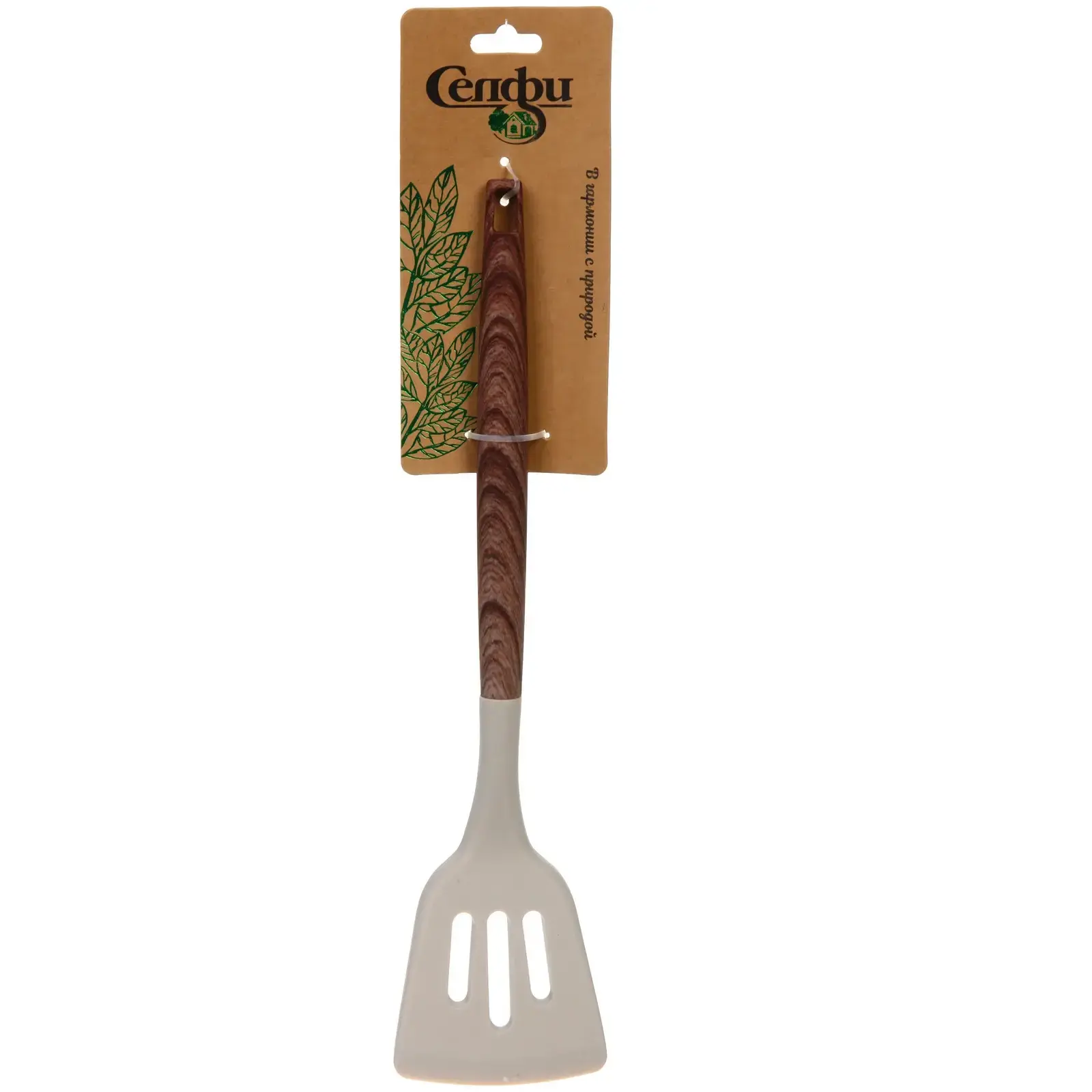 После использования просто вымойте лопатку теплой водой с мылом. Деревянная ручка имеет специальное отверстие для удобного хранения на кухонной подвесной системе.