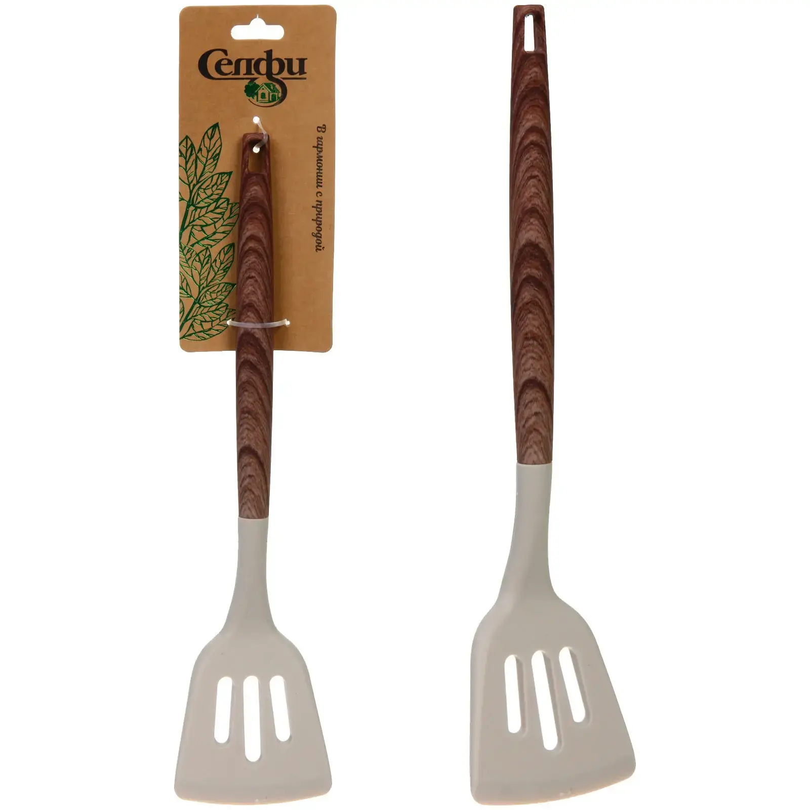 Кухонная лопатка 'АМАДЕО' сочетает в себе практичность и комфорт использования. Её уникальная конструкция с прорезями позволяет легко удалять лишний жир и жидкость при готовке.