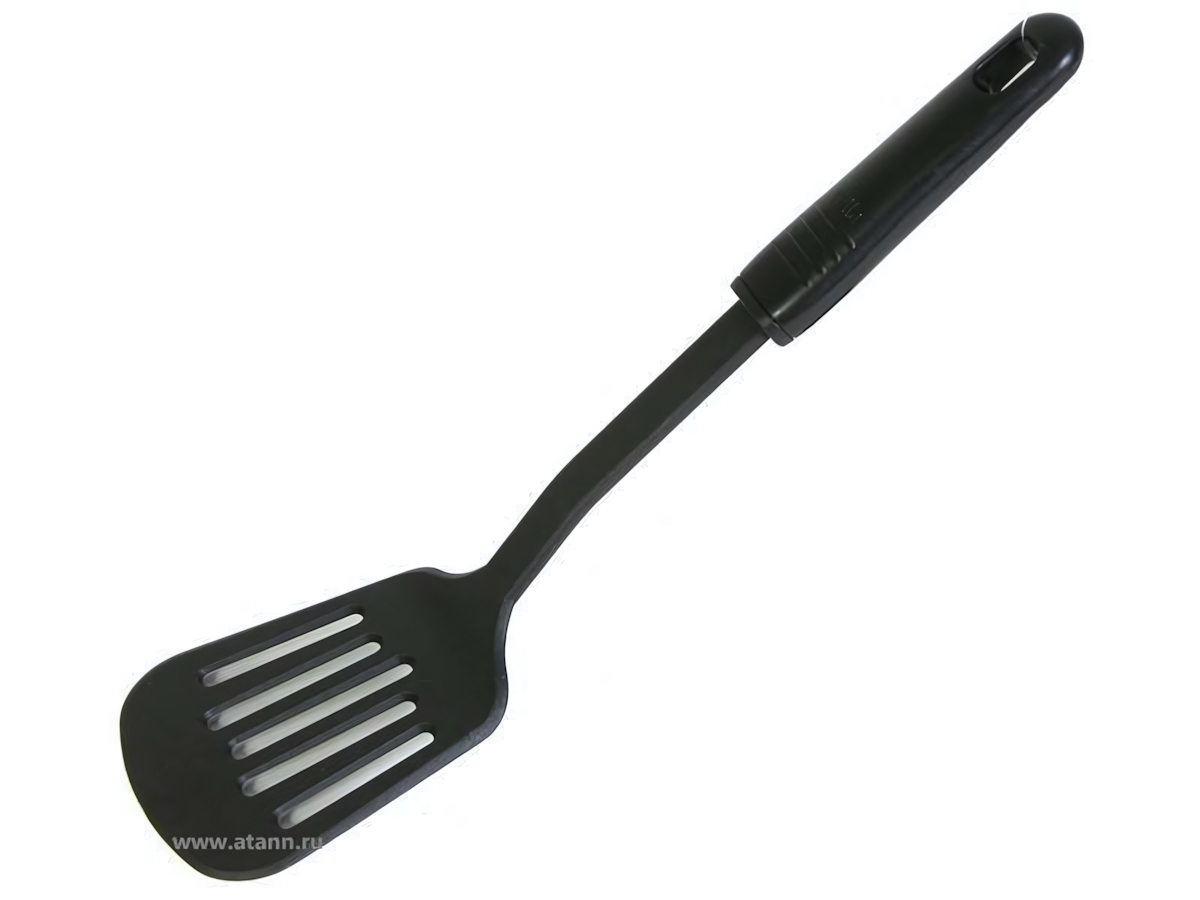 Лопатка кухонная пластиковая с прорезями, черная, удобная ручка