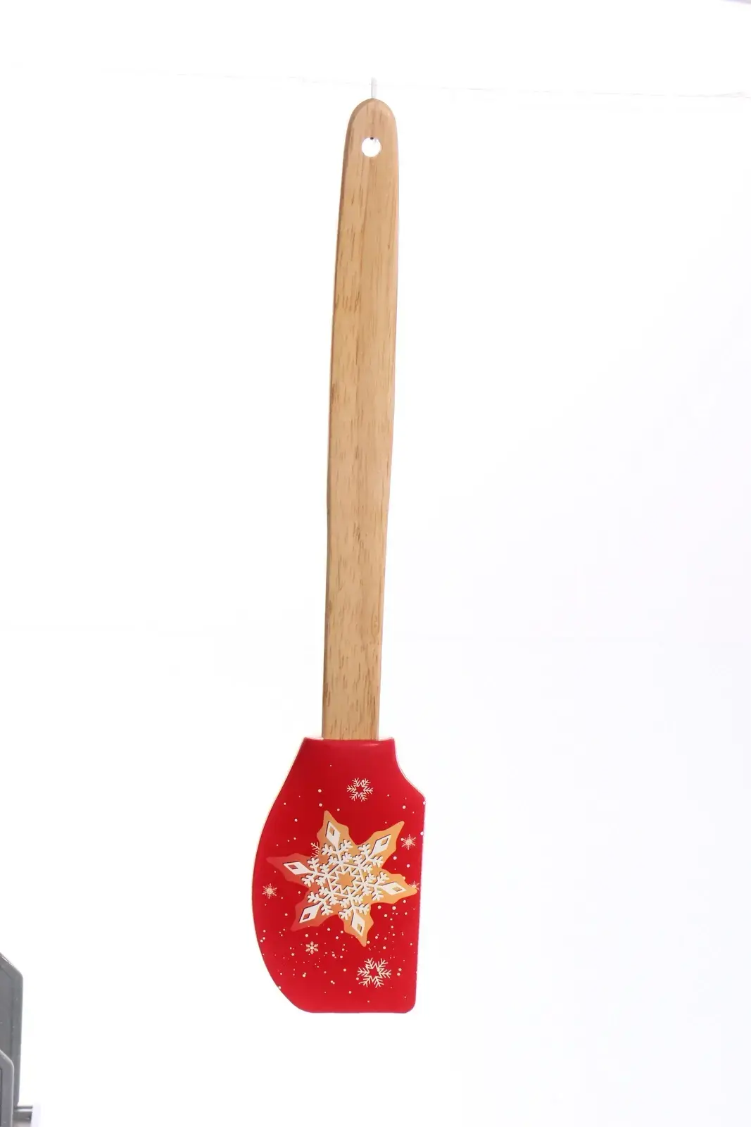 Лопатка силиконовая с ручкой из бамбука, 29.5х5.5см, цвета в ассортименте