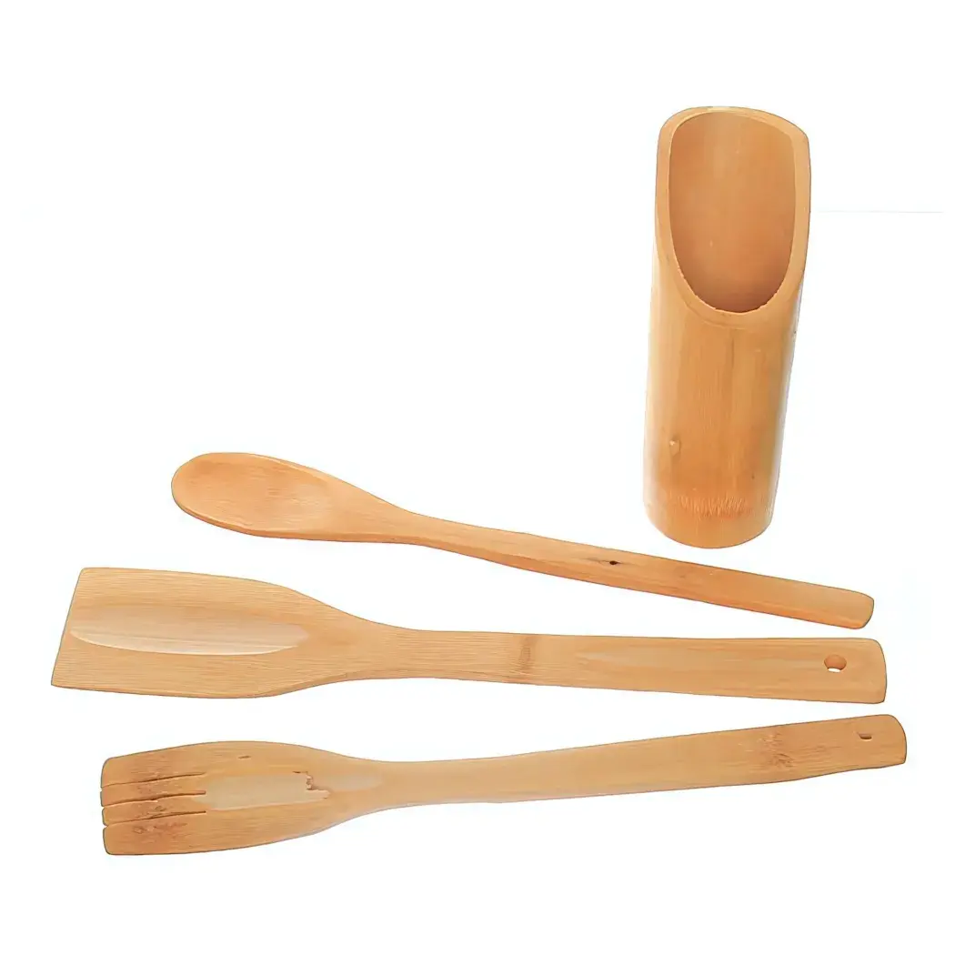 Экологичный набор из 3 бамбуковых лопаток с удобной подставкой станет незаменимым помощником на вашей кухне. Бамбук не повреждает покрытие посуды и безопасен для всей семьи.