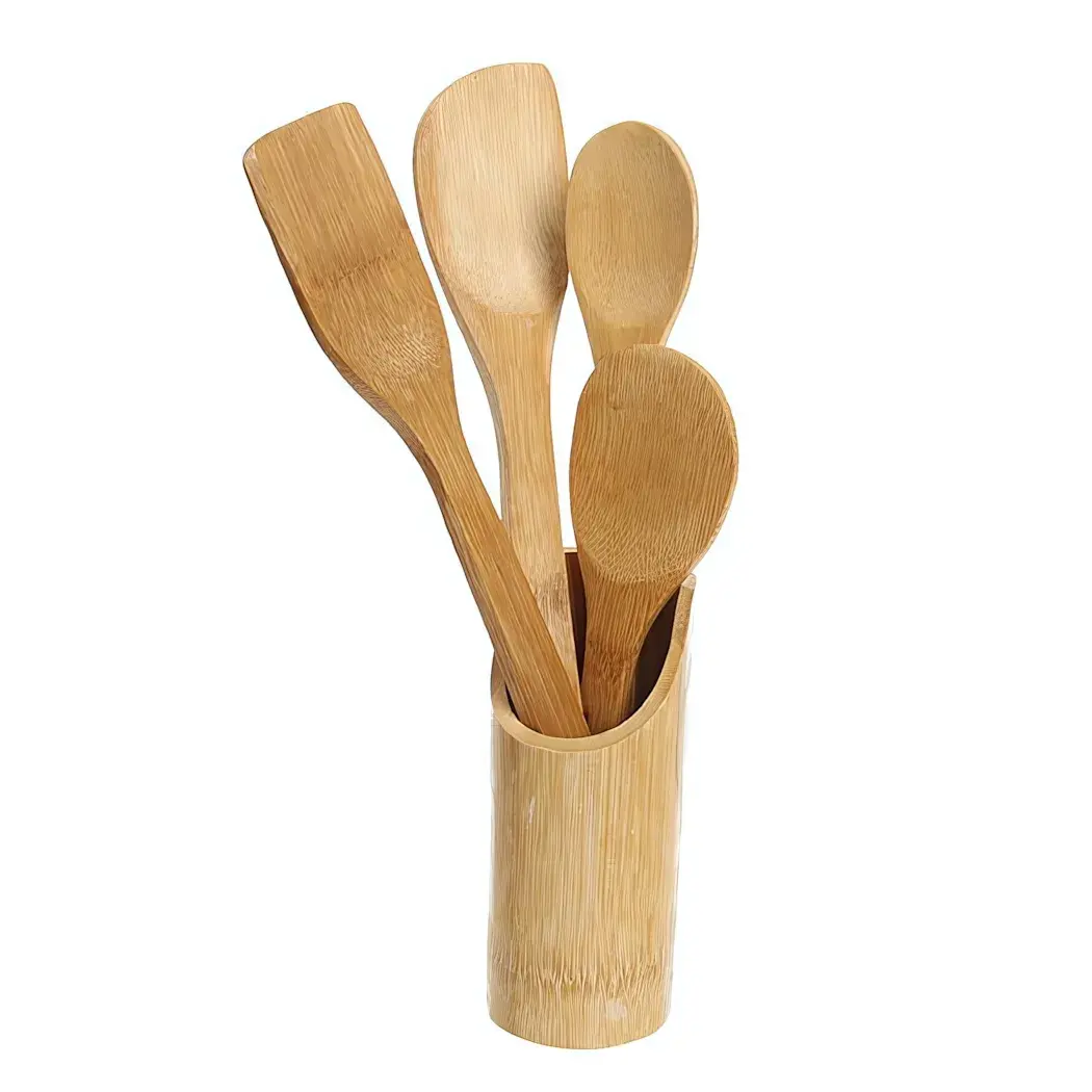 Набор бамбуковых лопаток 4 шт в подставке, для антипригарной посуды