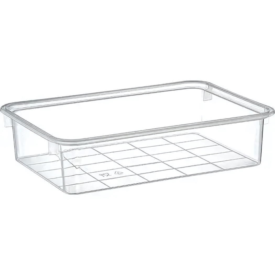 Прозрачный лоток с дренажной решеткой создан для тех, кто ценит функциональность и чистоту. Его лаконичный дизайн впишется в любой интерьер, а практичная конструкция упростит хранение овощей, фруктов или кухонных мелочей.