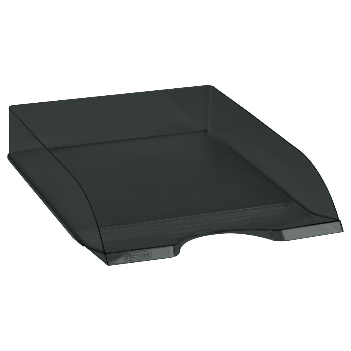 Лоток для бумаг горизонтальный «Дельта» СТАММ, пластик, тонированный чёрный, 60х315х250 мм, штабелируемый