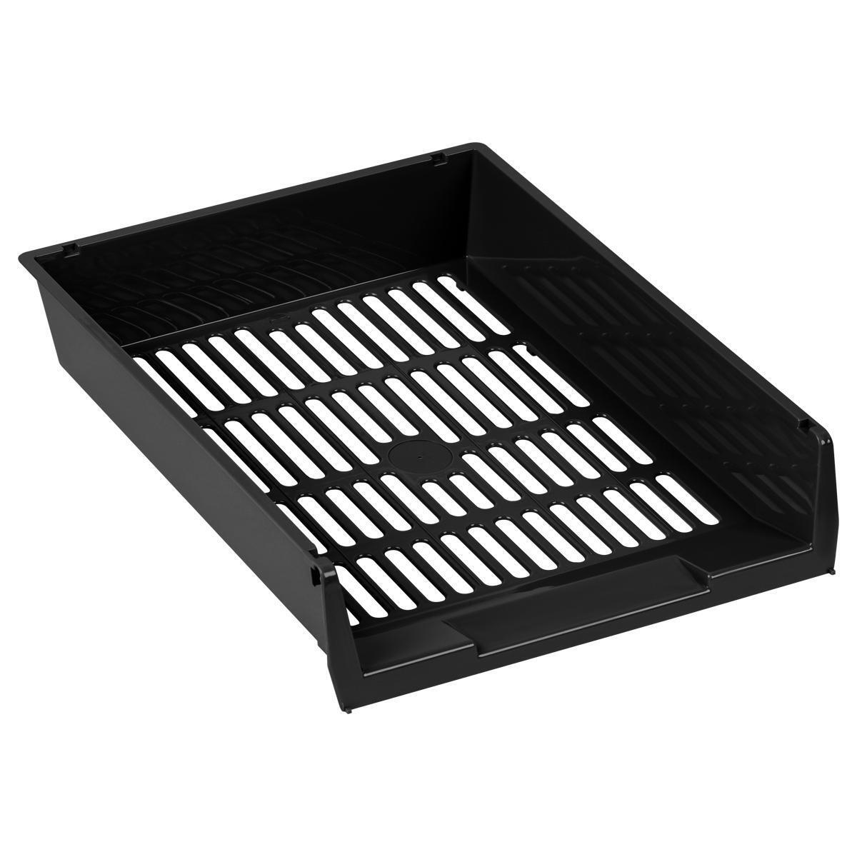 Лоток подойдет для домашнего и офисного использования, он легко устанавливается на другие подобные изделия, позволяя создавать удобные многослойные системы хранения. Сетчатая поверхность обеспечивает хорошую вентиляцию и визуальный контроль за содержимым, а черный цвет и оригинальный дизайн отлично впишутся в любой интерьер.