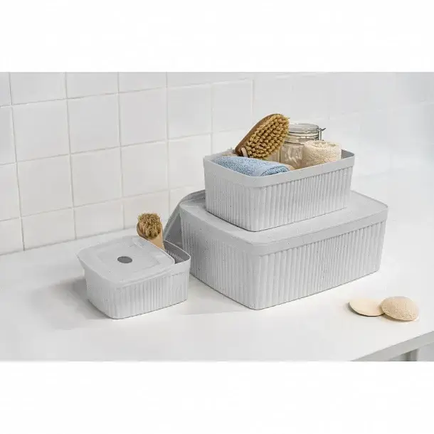 Контейнер для хранения с крышкой «VELVET» — это идеальное решение для упорядочивания ваших умывальных принадлежностей. Его современный и минималистичный дизайн не только украсит вашу ванную комнату, но и обеспечит удобство в использовании. Благодаря светло-серому цвету и рифленой поверхности, контейнер легко впишется в любой интерьер, создавая атмосферу уюта и порядка.