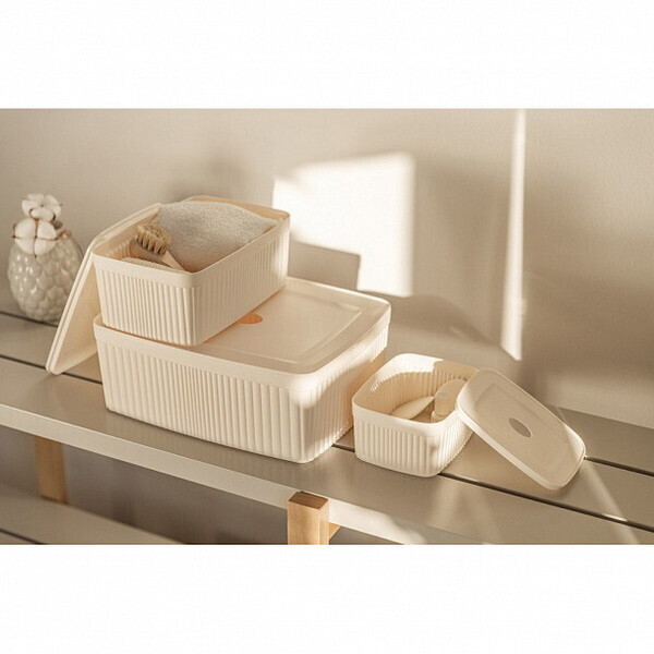 Контейнер «VELVET» легко впишется в любой интерьер, будь то ванная комната, кухня или гардероб. Он предназначен для хранения различных предметов, что делает его идеальным выбором для организации пространства. Благодаря крышке, ваши вещи будут защищены от пыли и загрязнений, а рифленая поверхность контейнера обеспечивает надежный хват и удобство при использовании.