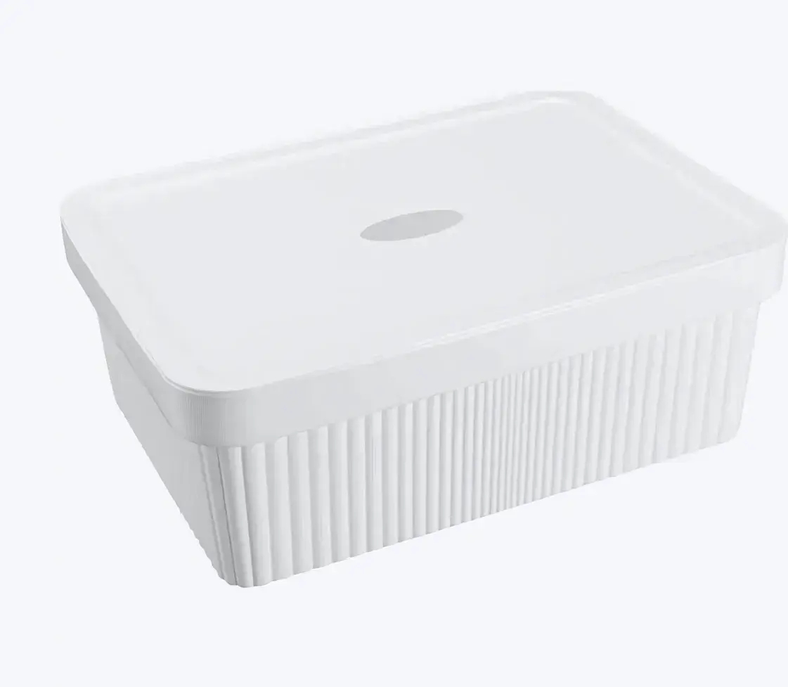 Практичный контейнер с плотной крышкой сохранит порядок в любом помещении. Идеален для кухонных запасов, сезонных вещей или инструментов — ваш выбор останется чистым и защищенным от влаги.
