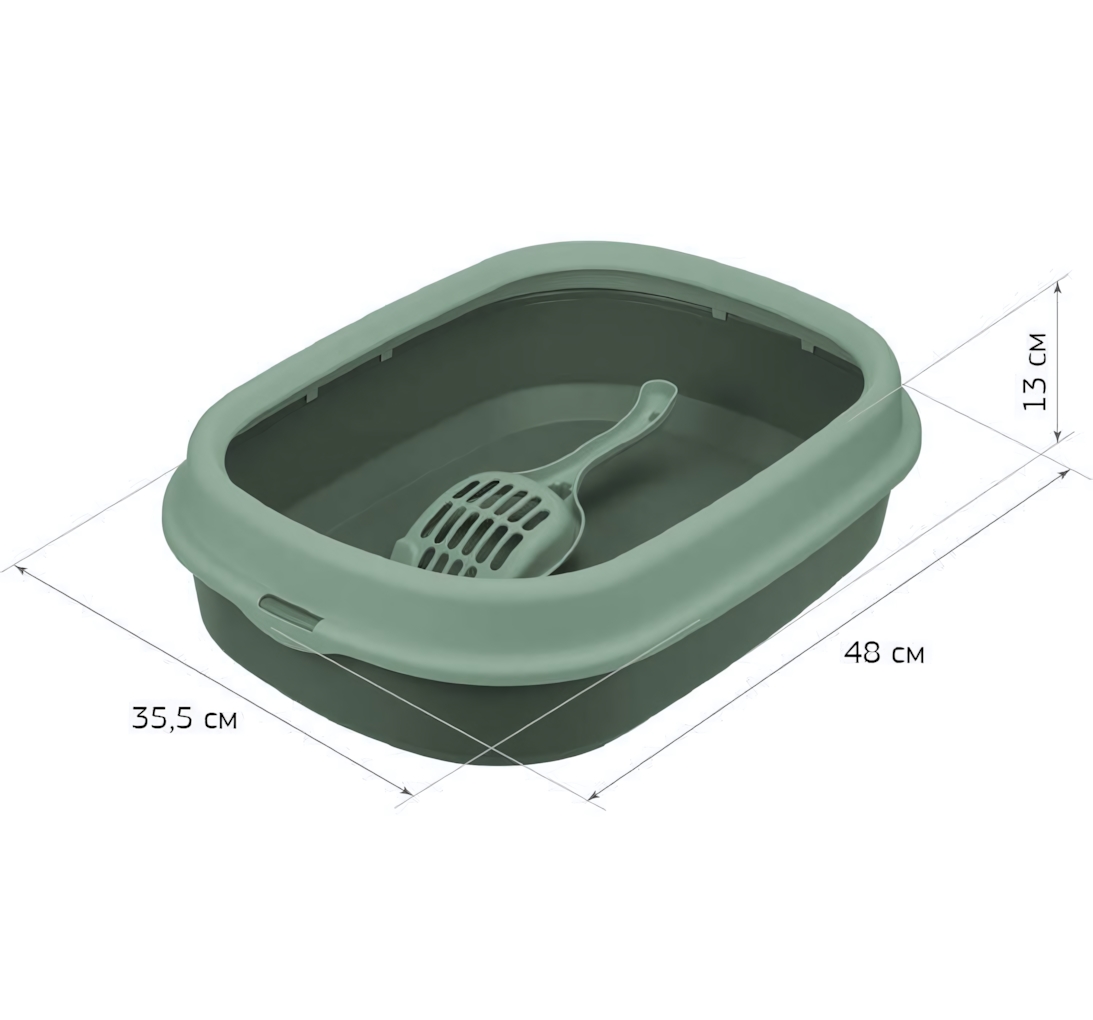 - Низкий борт высотой 5 см — удобен для пожилых и маленьких кошек