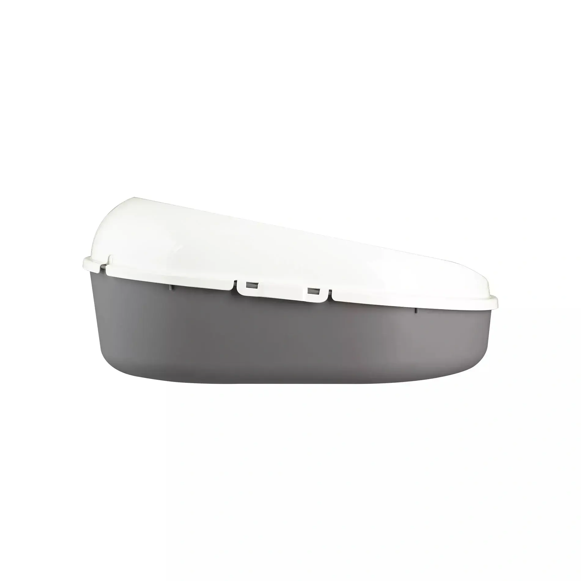 Почему стоит выбрать именно этот лоток? Во-первых, он обеспечивает надежную защиту от разбрасывания наполнителя благодаря высокому борту. Во-вторых, его гладкая поверхность облегчает процесс очистки, что экономит ваше время. В-третьих, стильный серый цвет и современный дизайн делают его привлекательным элементом в вашем доме.