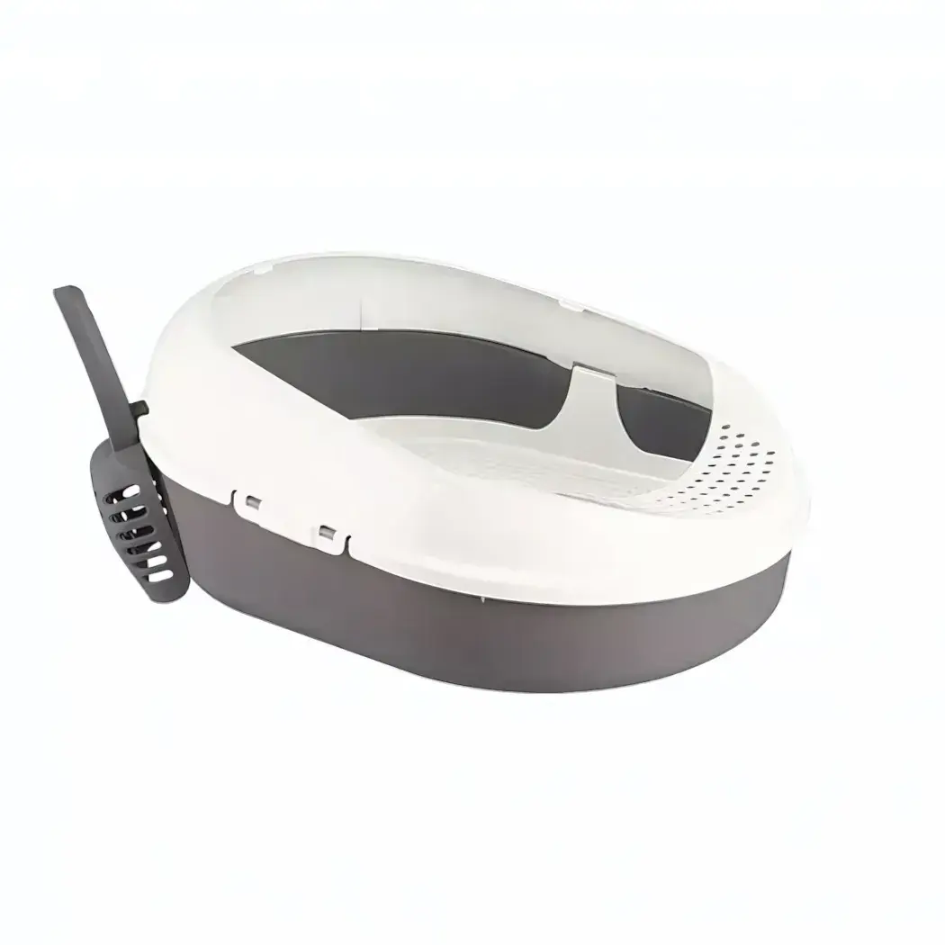 Лоток выполнен из прочного пластика, что гарантирует его долговечность и легкость в уходе. Он имеет бортики, которые предотвращают высыпание наполнителя, а также сетку для улучшения циркуляции воздуха. С совком, который идет в комплекте, вы сможете быстро и легко убирать за своим питомцем. Лоток подходит для кошек всех размеров и возрастов, обеспечивая им комфортное место для туалета.