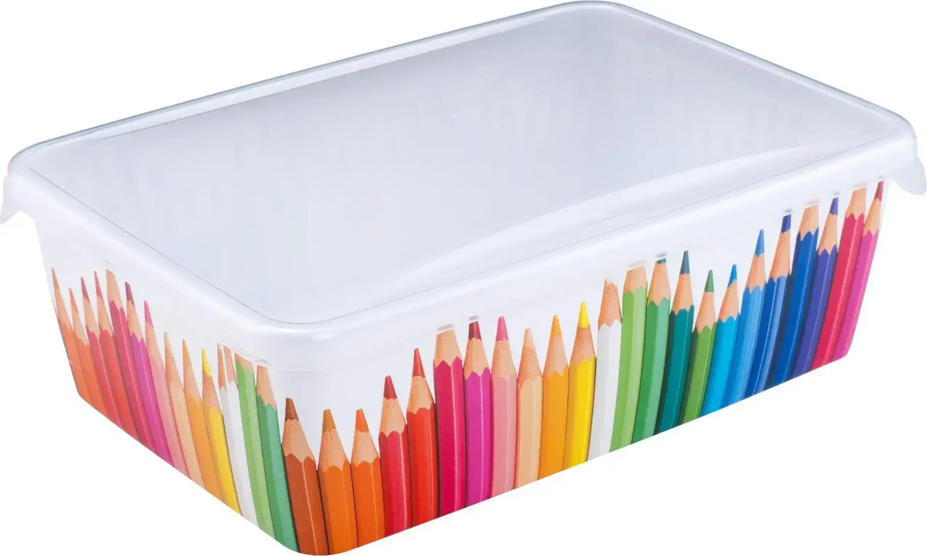 Лоток для хранения «Keeplex» Trendy с крышкой, пластик, рисунок карандашей, 22х14х7см