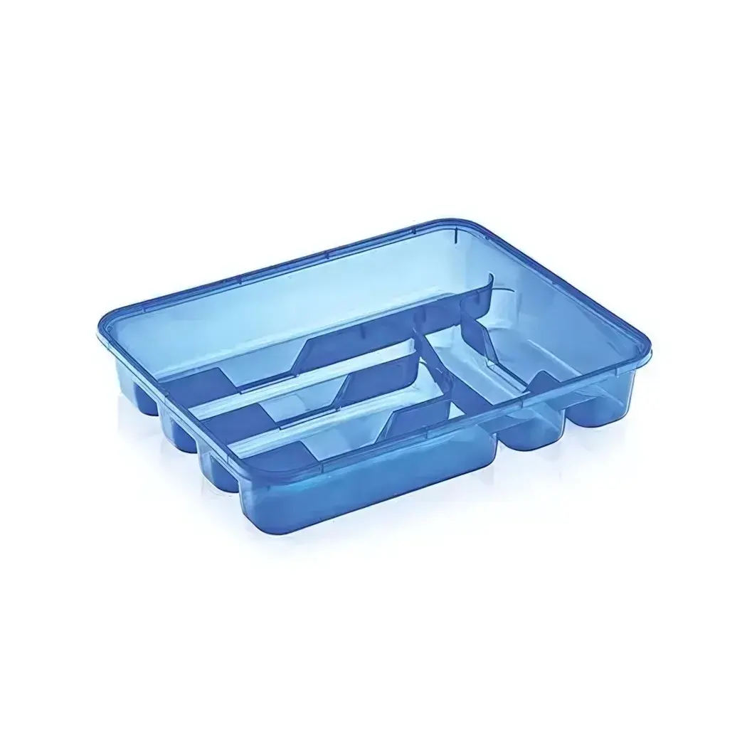Прозрачный органайзер с разделителями — решение для аккуратного размещения столовых приборов и мелких кухонных принадлежностей. Защитная крышка сохранит чистоту содержимого, а продуманная конструкция обеспечит быстрый доступ к нужным предметам.