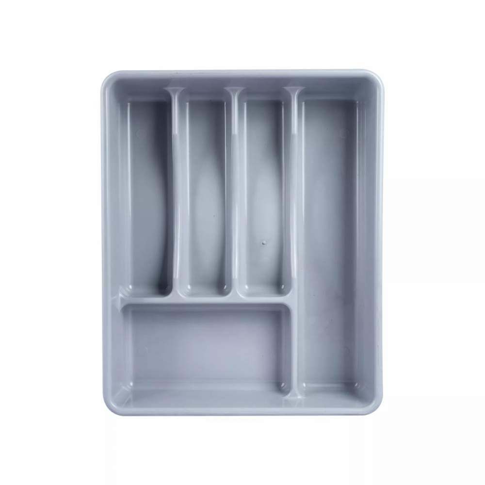Лоток для столовых приборов помогает быстро организовать пространство кухонного ящика и поддерживать идеальный порядок без лишних усилий. Благодаря продуманной форме и универсальному серому цвету он гармонично впишется в любой интерьер кухни и сделает хранение ложек, вилок и ножей максимально удобным.