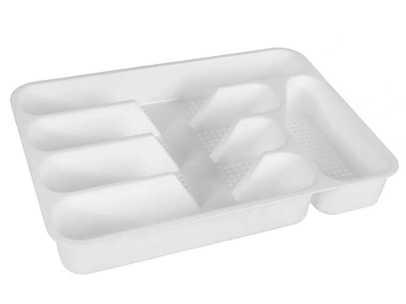 Лоток идеально подходит для хранения вилок, ложек, ножей и других мелких кухонных аксессуаров. Он также может быть использован в офисе для организации канцелярских принадлежностей. Удобные углубления позволяют разместить предметы так, чтобы они не мешали друг другу, а гладкая поверхность и округлые края обеспечивают безопасность в использовании.