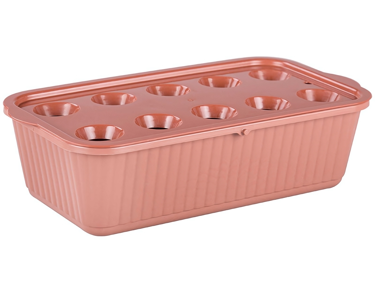 Подходит для выращивания лука на подоконнике, балконе или в зимней теплице. Рифлёная поверхность крышки предотвращает скольжение луковиц, а устойчивое основание гарантирует безопасность на любой поверхности.