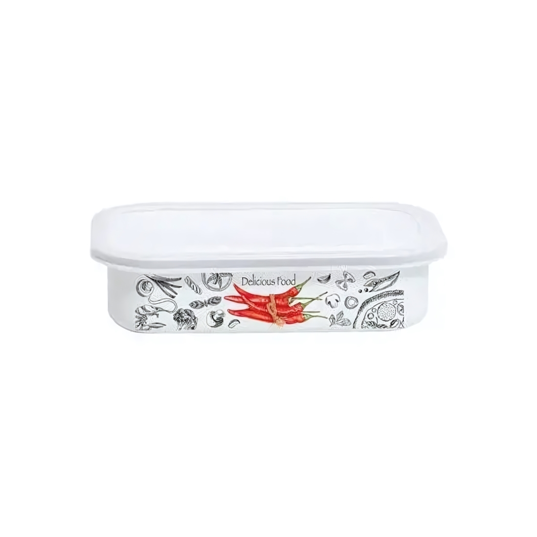 Эмалированный лоток с герметичной крышкой — идеальное решение для сохранения свежести продуктов и удобной подачи блюд. Яркий дизайн с аппетитным рисунком перцев создаст настроение даже на обычном обеденном столе.