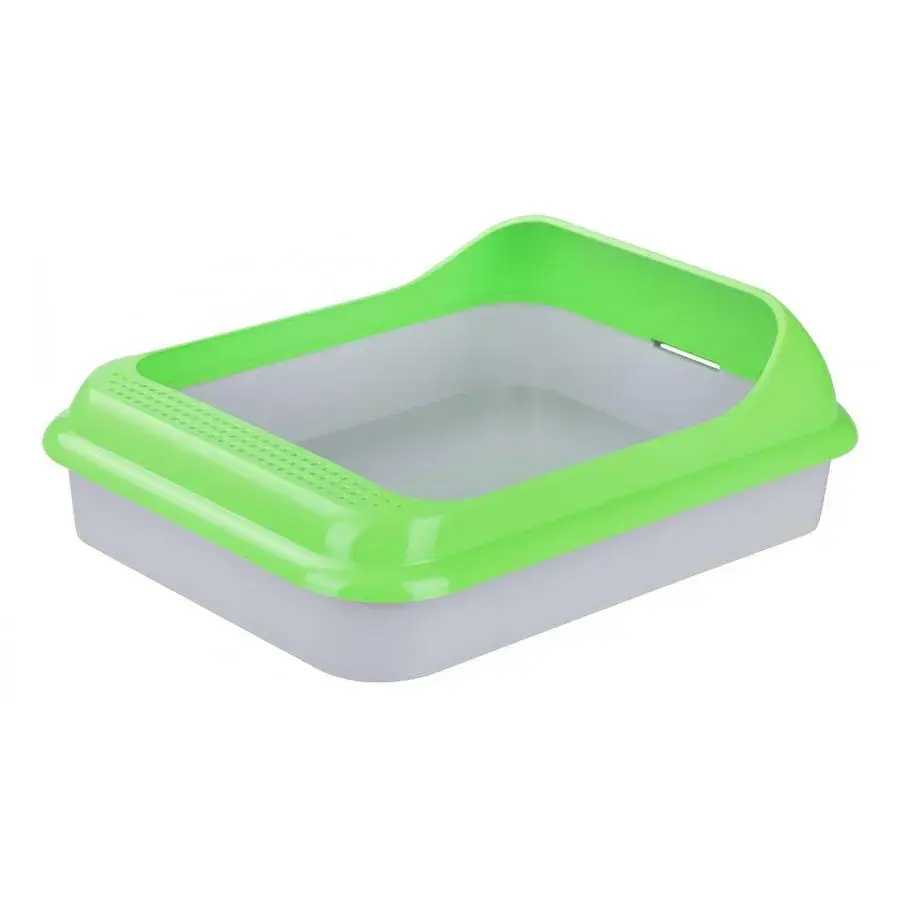 Лоток с бортом «Барсик» 17 шт, пластиковый, зеленая крышка, белый корпус, для ухода за животными