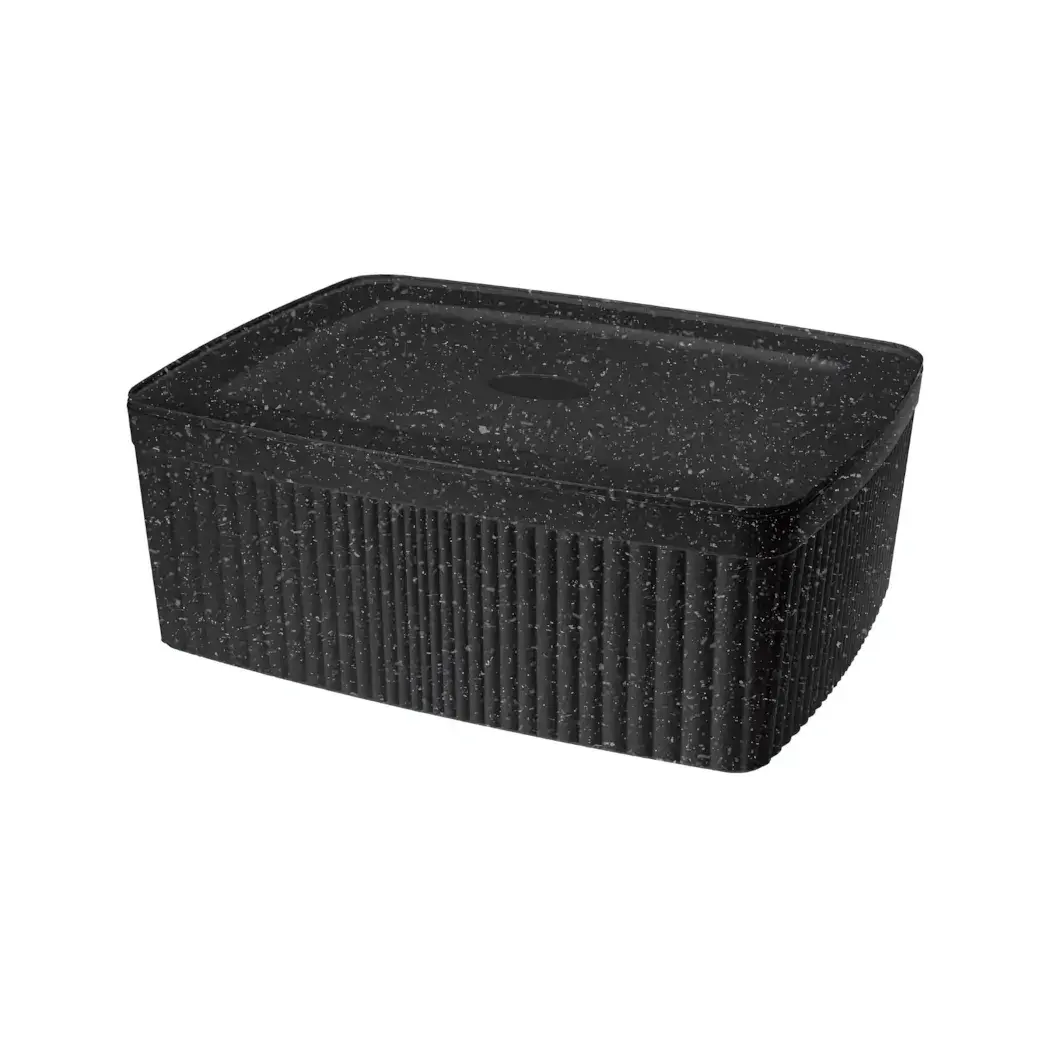 Лоток с крышкой Velvet — это идеальное решение для организации хранения умывальных принадлежностей в ванной комнате. Его стильный черный гранитный цвет и компактные размеры 150х115х70 мм делают его не только функциональным, но и эстетически привлекательным. Объем 0,9 литра позволяет удобно разместить все необходимые мелочи, а специальное отверстие-ручка обеспечивает легкость в открывании крышки.