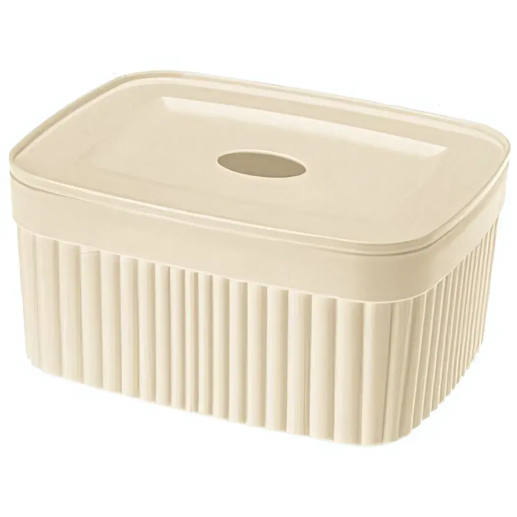 Эта корзинка с крышкой «VELVET» в бежевом цвете станет незаменимым помощником в вашем доме. Она не только стильно выглядит, но и обеспечивает удобство хранения различных предметов. Размеры 15х11.5х7 см и объем 0.9 литра позволяют использовать её в самых разных целях — от хранения мелочей до организации пространства в шкафах и на полках.