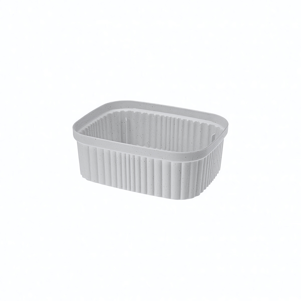 Лоток выполнен из прочного, долговечного пластика светло-серого цвета, с текстурированной поверхностью и гладким верхом, что обеспечивает легкость в уходе и устойчивость к бытовым условиям. Несколько таких лотков можно ставить один в другой или размещать рядом, что позволяет максимально эффективно организовать пространство и спрятать беспорядок.