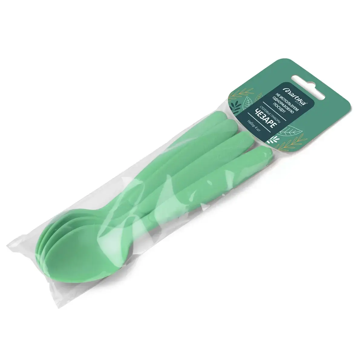 Набор ложек «Чезаре» одноразовые, пластиковые, 4 шт, мятный цвет