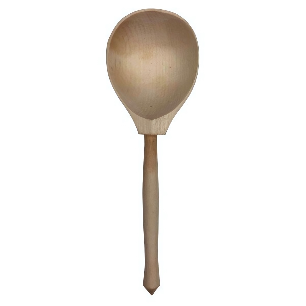 Деревянная ложка изготовлена из экологически чистого цельного дерева, что обеспечивает безопасность, долговечность и приятные тактильные ощущения при использовании.