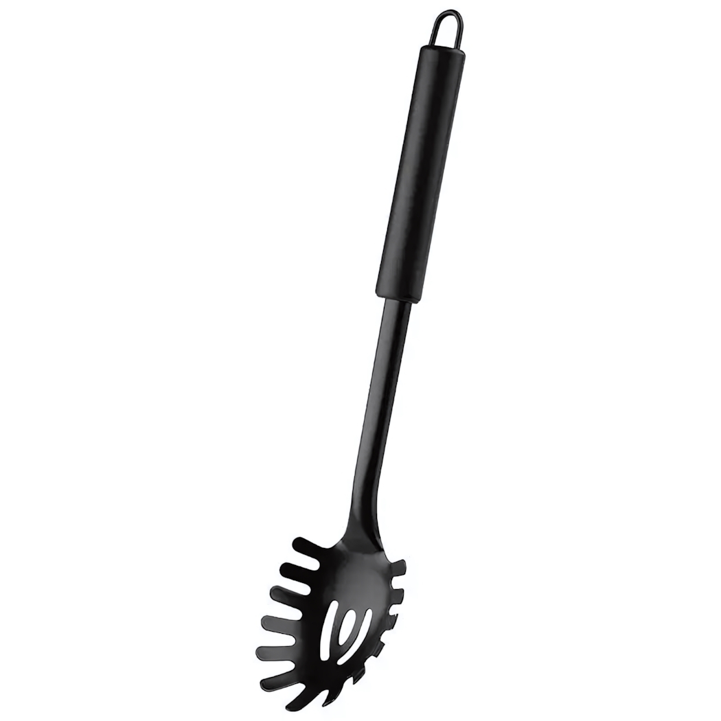 Откройте для себя удобство приготовления и подачи спагетти с ложкой Mallony CLASSICO NERO. Этот кухонный аксессуар идеально подходит для поднятия и сервировки спагетти благодаря длинной ручке и рабочей части с зубцами и отверстиями, позволяющим легко захватывать и подавать пасту.