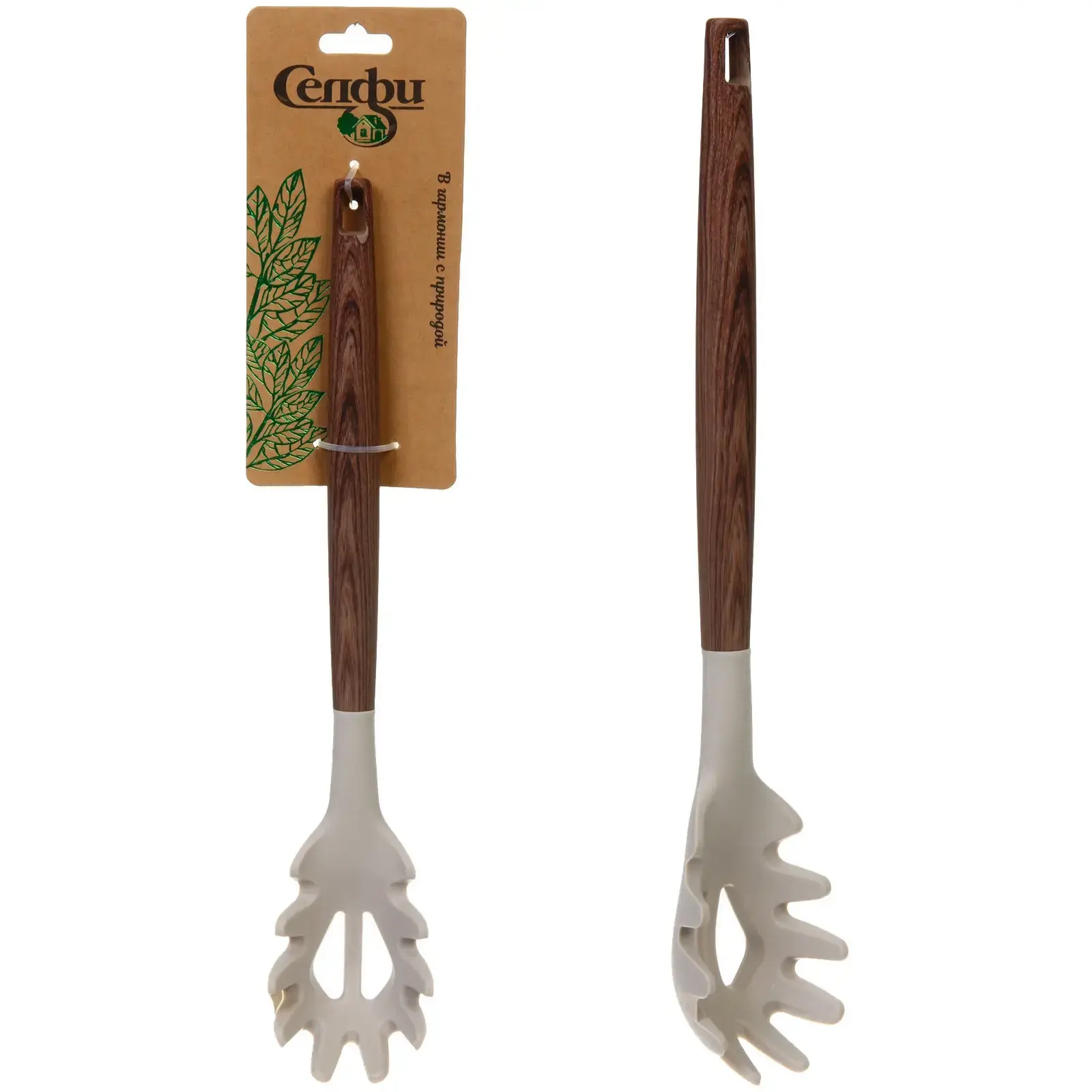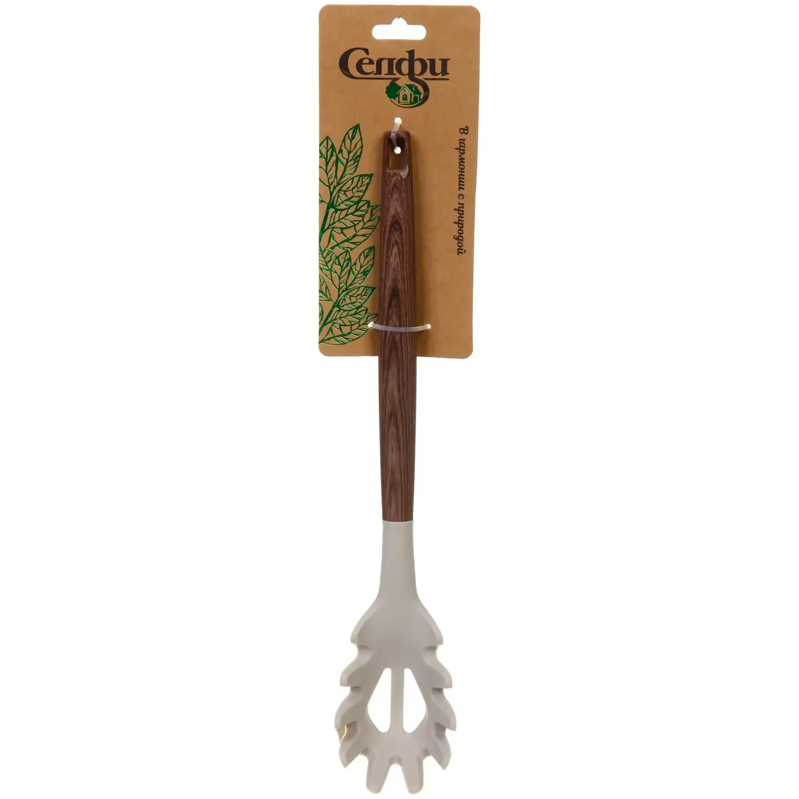 Ложка для спагетти 'АМАДЕО' 32,5см, силикон/дерево, коричневая