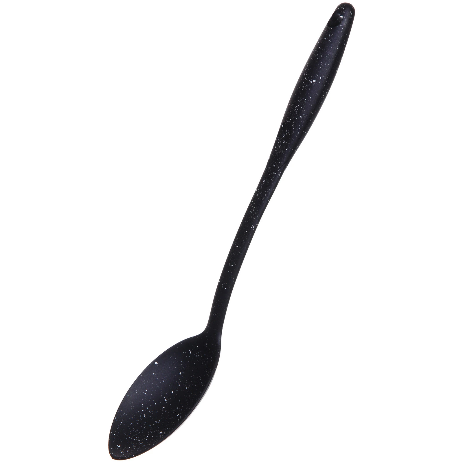 Эта кухонная ложка станет незаменимым аксессуаром для приготовления и сервировки пищи. С ее помощью вы сможете легко перемешивать, раздавать и подавать блюда, не беспокоясь о повреждении посуды. Ложка выполнена из прочного пластика, что обеспечивает долговечность и легкость в использовании. Черный цвет с белыми точками придает ей стильный и современный вид, который отлично впишется в любой кухонный интерьер.