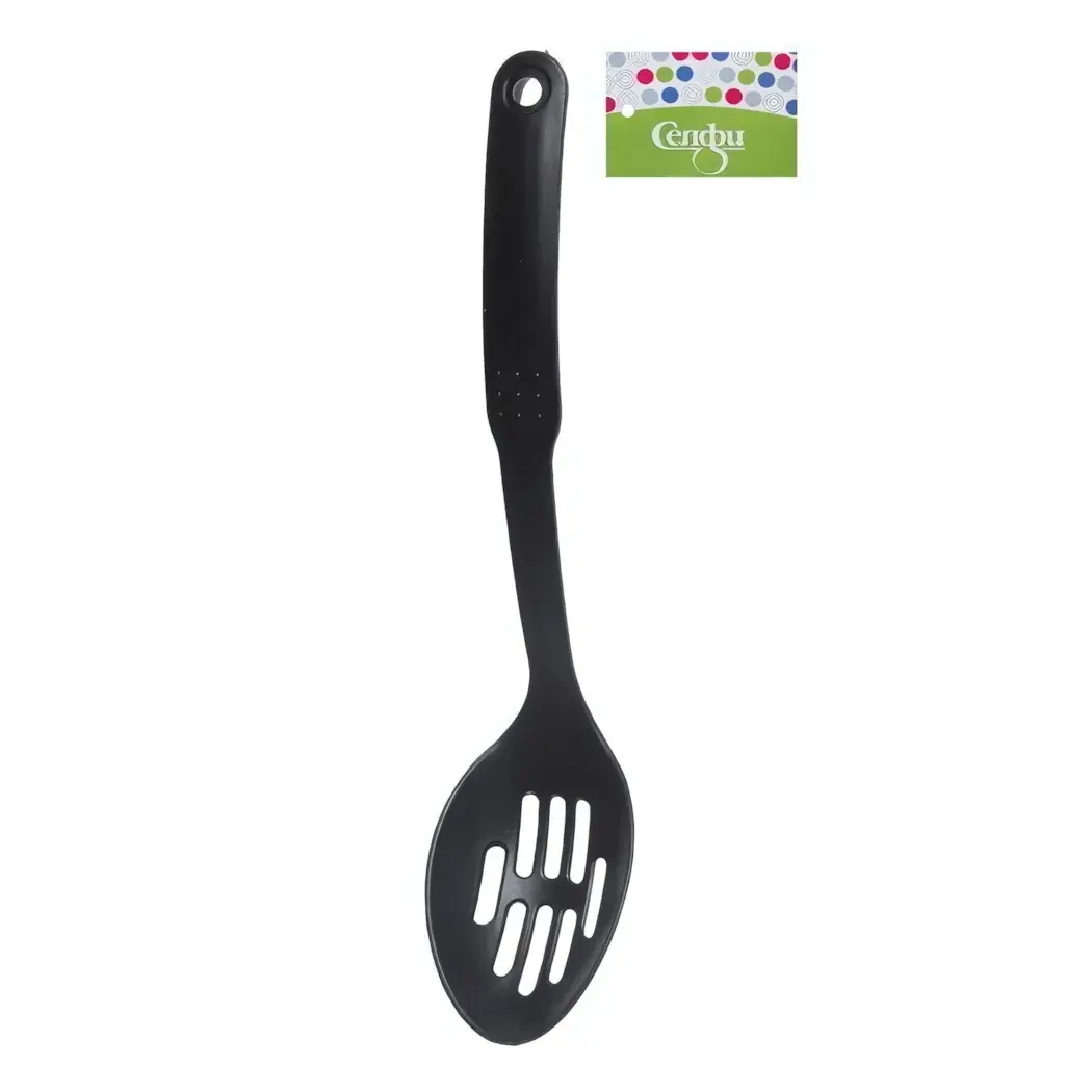 Ложка имеет черный цвет и стильный дизайн, который отлично впишется в любой интерьер кухни. Размеры: 29 см в длину, что делает её удобной для работы с различными блюдами. Не упустите возможность сделать вашу кухню более функциональной и стильной с этой кухонной ложкой!