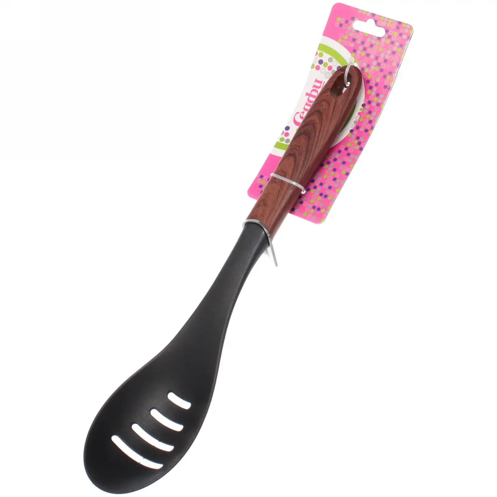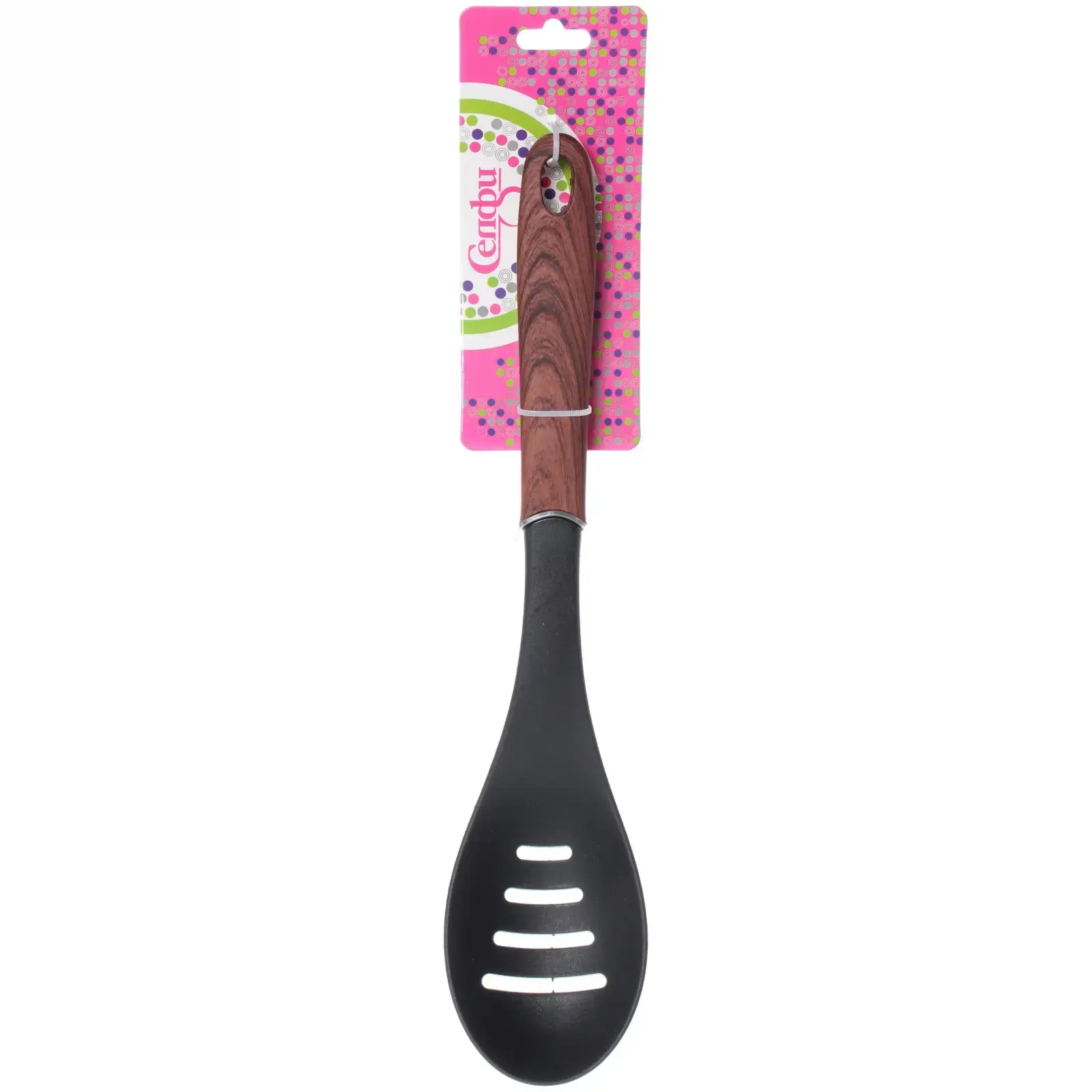 Ложка кухонная с прорезями «Сhocolate», пластик, деревянная ручка, 30 см