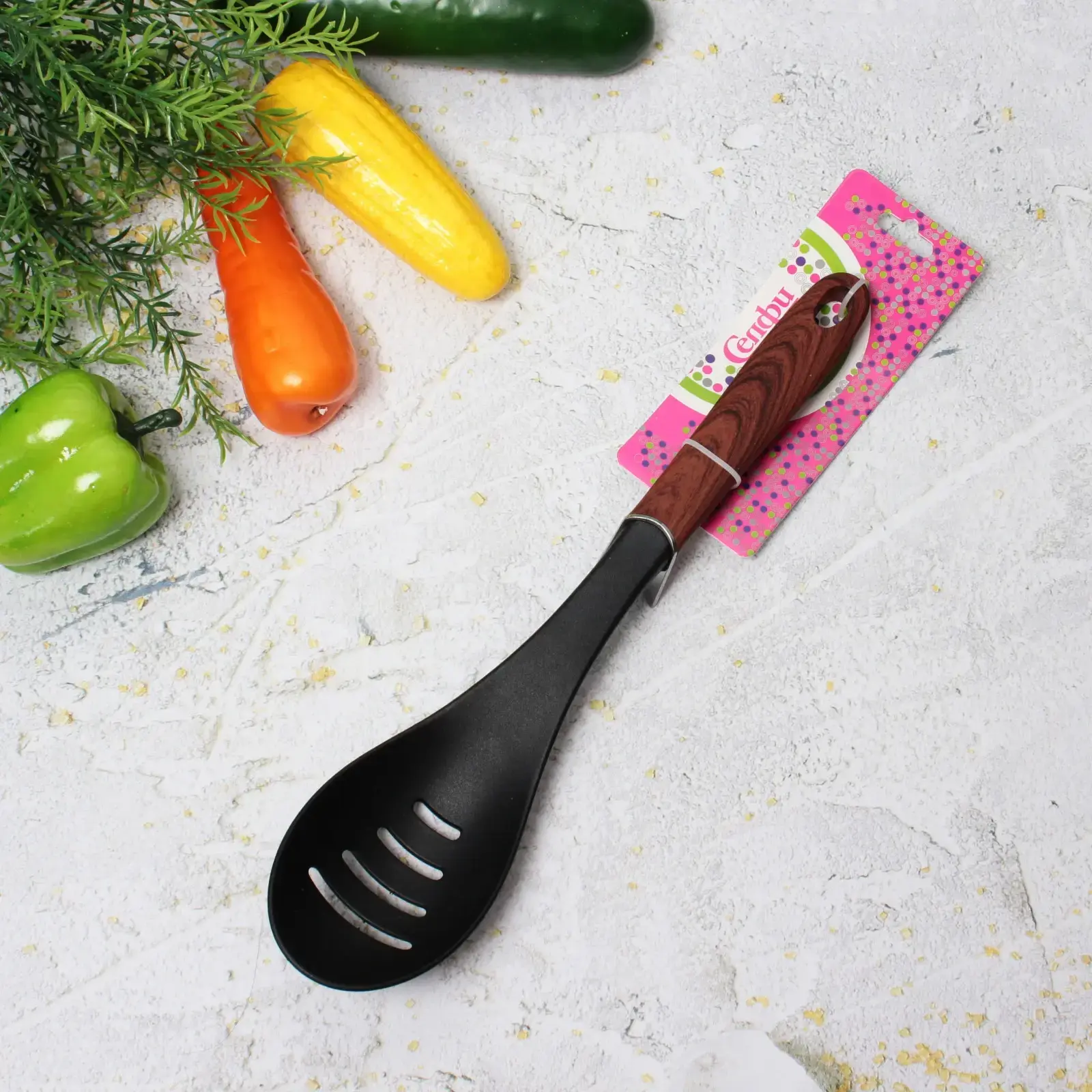 Ложка с перфорированной поверхностью и эргономичной ручкой создана для тех, кто ценит комфорт в процессе готовки. Сочетание практичного пластика и натурального дерева делает инструмент идеальным выбором для ежедневного использования.
