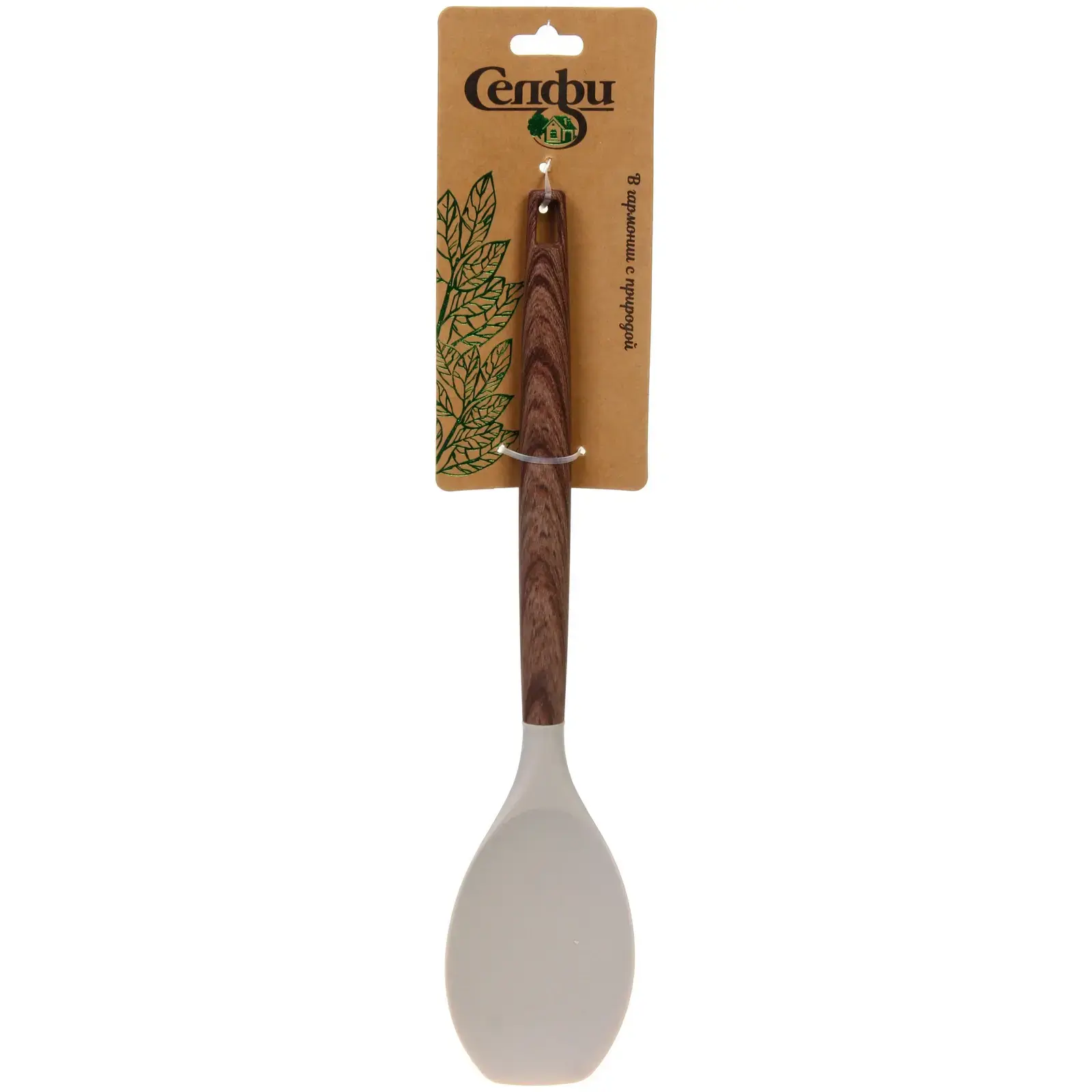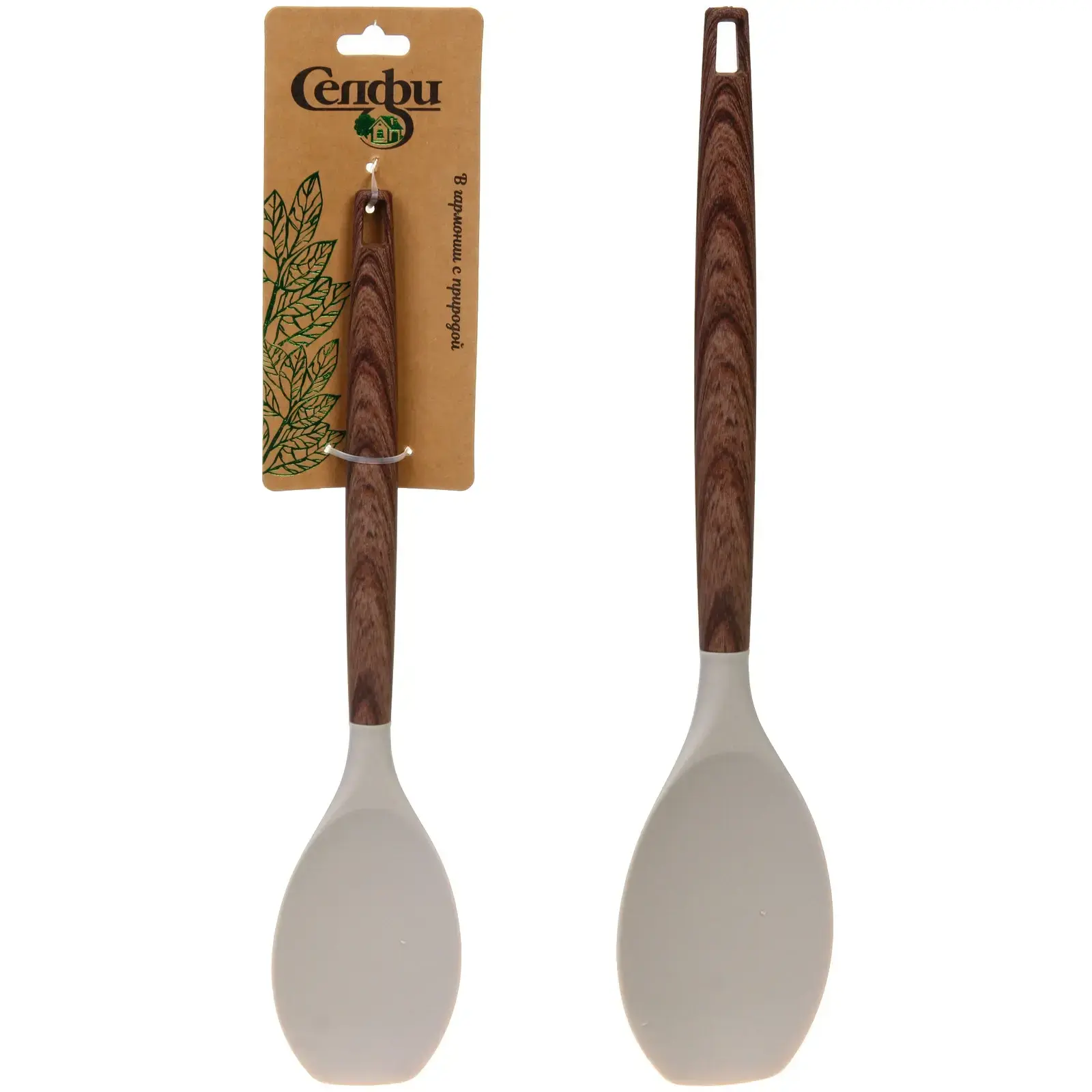 Комбинация качественного силикона и натурального дерева создает идеальный баланс между функциональностью и экологичностью. Ложка отлично подходит для перемешивания, сервировки и приготовления блюд.