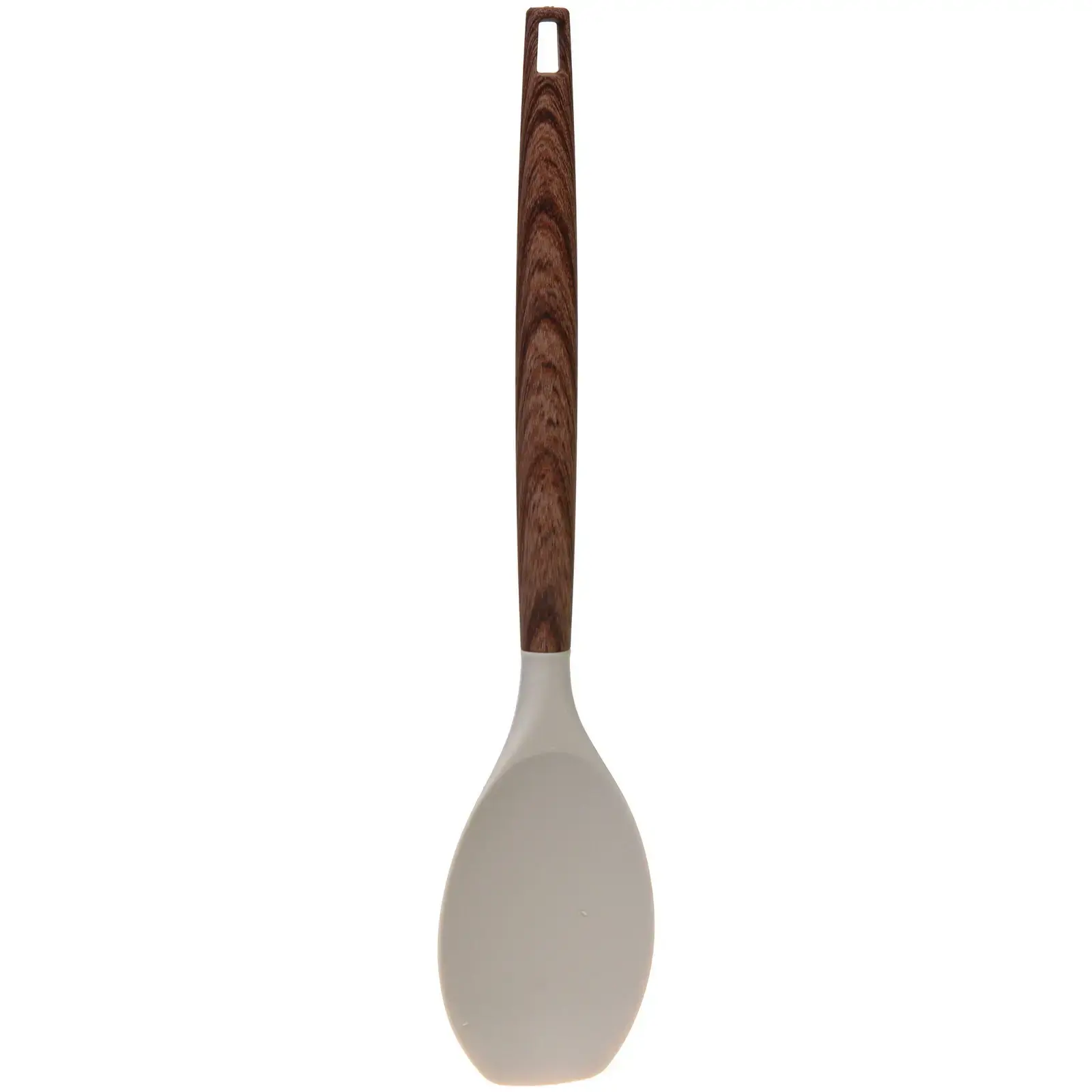 Ложка кухонная силиконовая 'АМАДЕО' 32,5см, деревянная ручка, белый/коричневый