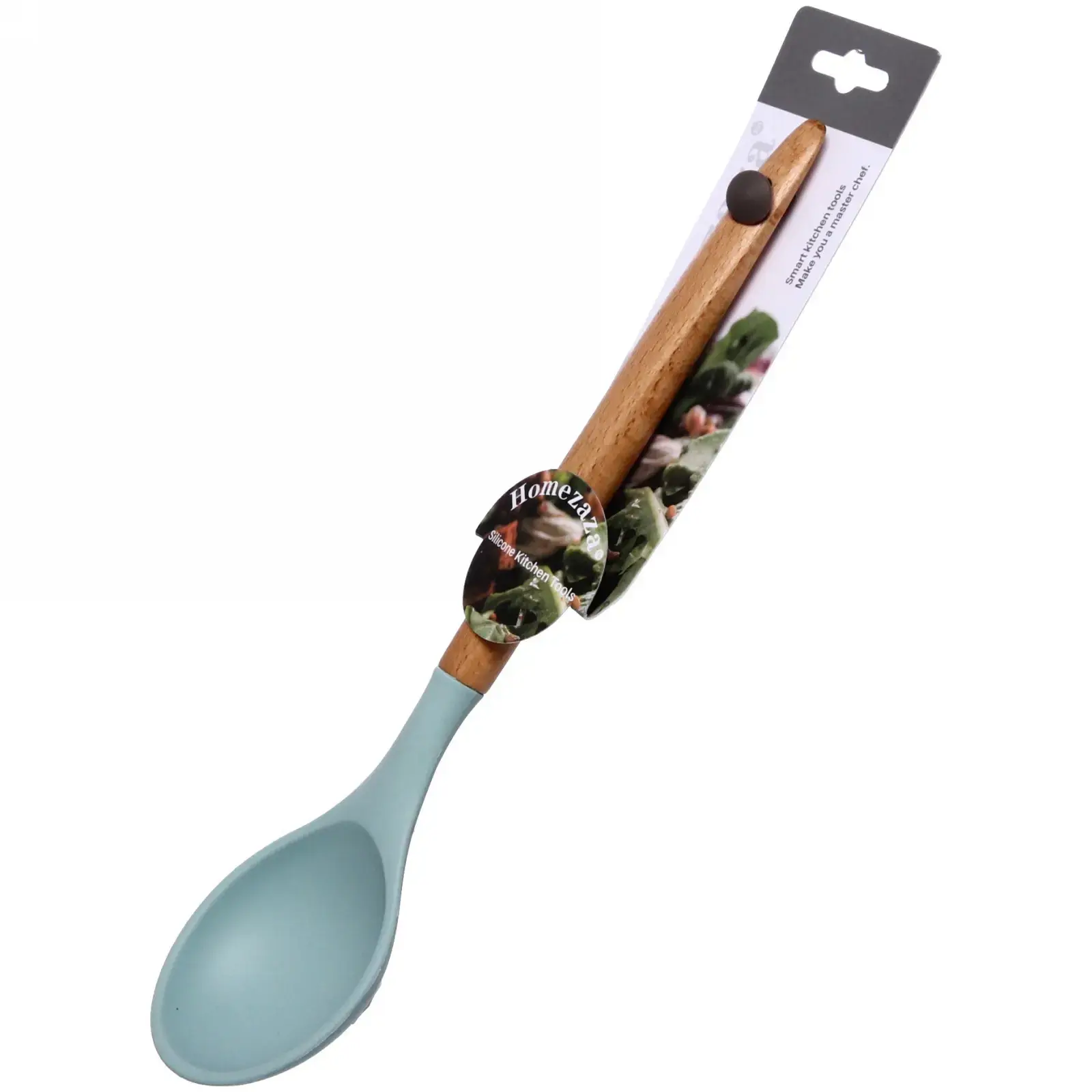 Ложка изготовлена из высококачественного силикона и дерева, что делает её безопасной для использования с антипригарными покрытиями. Она легко моется и устойчива к высоким температурам, что позволяет использовать её для приготовления горячих блюд. Подходит для всех, кто ценит практичность и стиль в кухонной утвари.