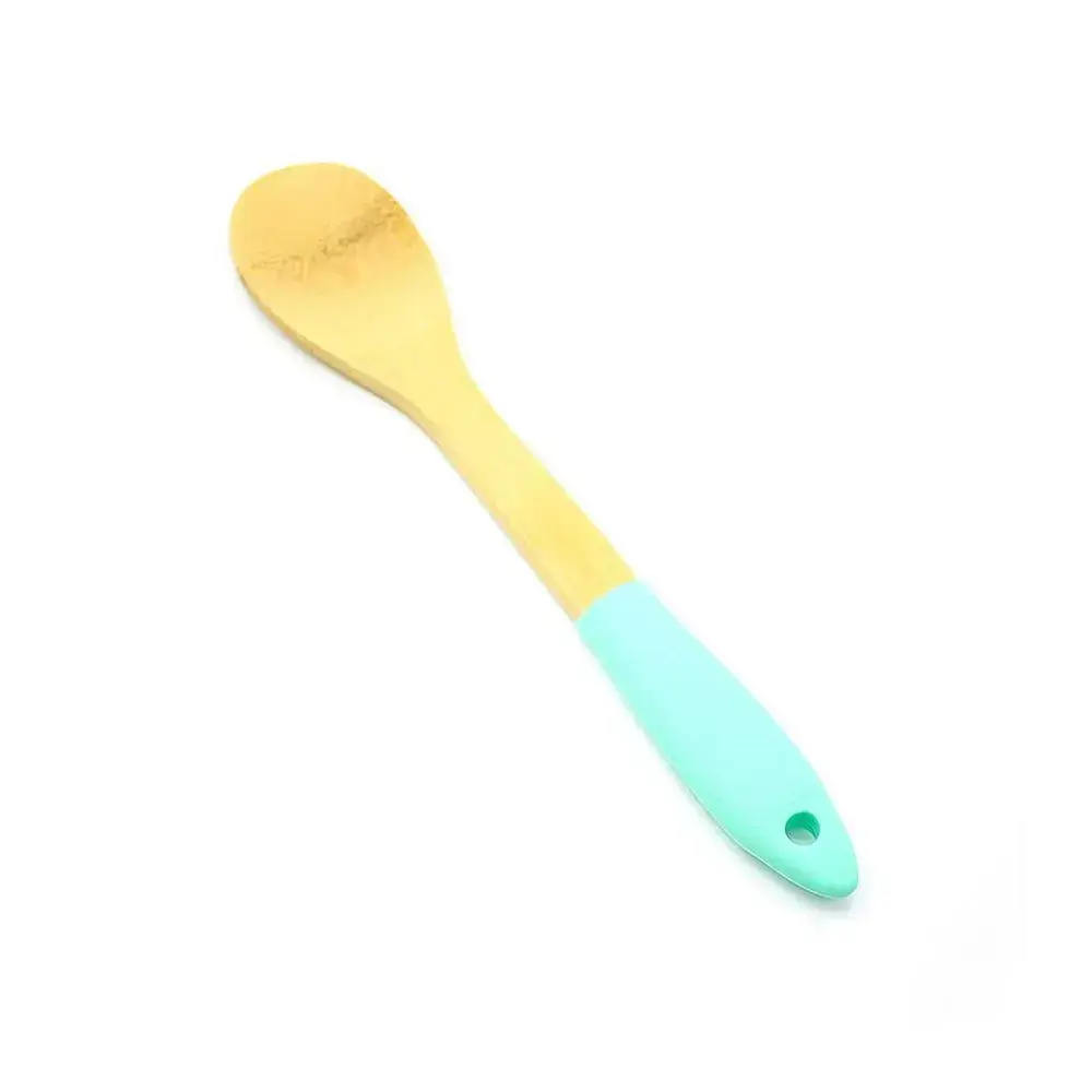Ложка кулинарная с бамбуковой лопаткой и силиконовой ручкой, 30 см, безопасна для антипригарного покрытия