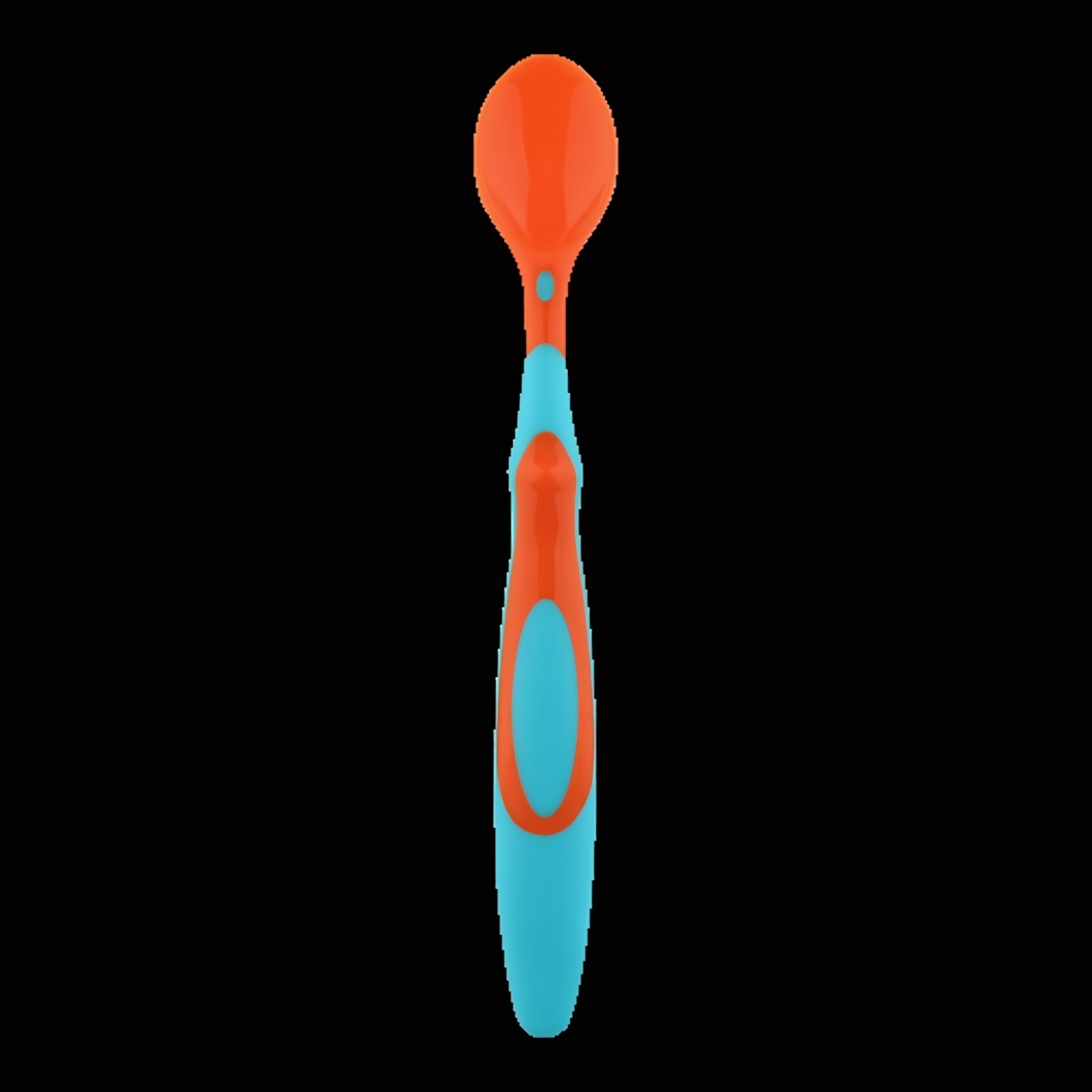 Ложка для кормления детей от 4 месяцев, 15 см, PP, оранжево-голубая, мягкий черпачок, антискользящая ручка (Lubby)