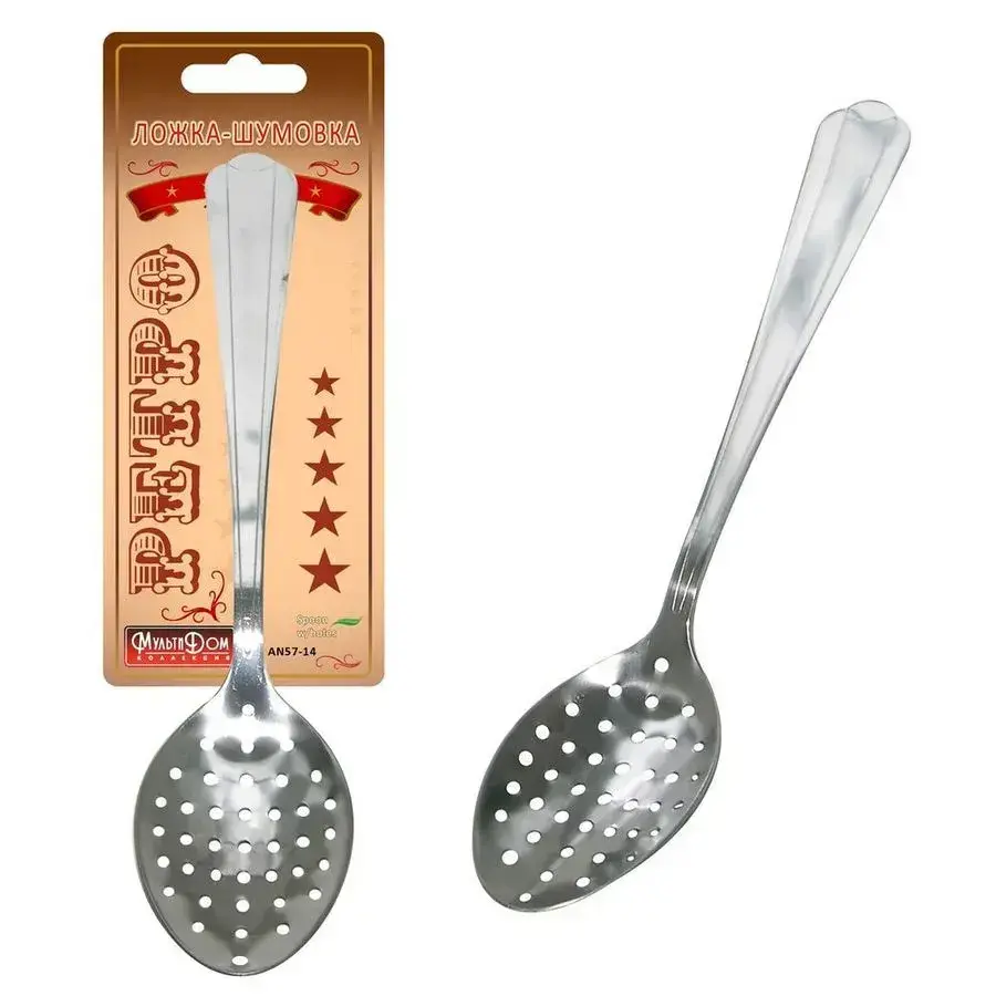 Ложка-шумовка с продуманным ретро-дизайном сочетает в себе функциональность и эстетику. Изготовленная из прочной нержавеющей стали, она станет вашим надежным спутником при приготовлении супов, вареников и жареных блюд.