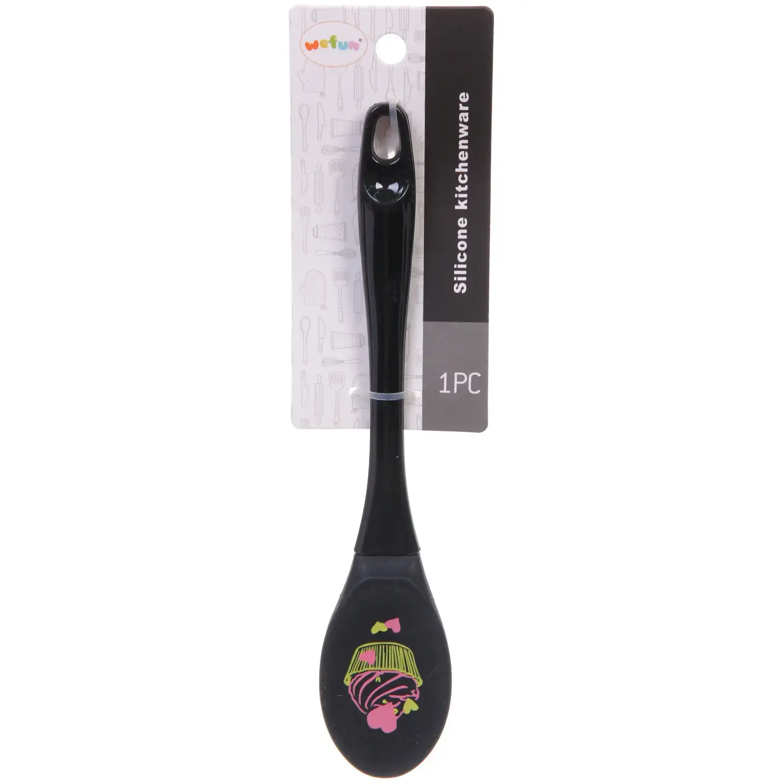 Эта силиконовая ложка станет идеальным аксессуаром для приготовления ваших любимых блюд. Благодаря своему элегантному черному цвету и оригинальному дизайну с изображением десерта, она не только функциональна, но и добавит стиль в ваш кухонный интерьер. Ложка имеет размеры 24,3 см в длину и 4,8 см в ширину, что делает её удобной для использования в различных кулинарных задачах.