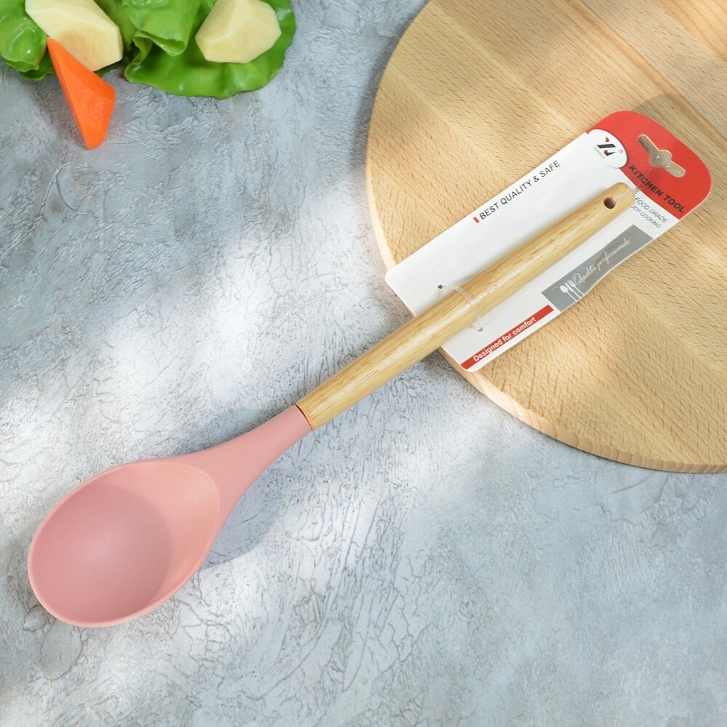 Ложка силиконовая с деревянной ручкой, лёгкое перемешивание, 31.5см длина, диаметр 6.2см, цвет в ассортименте