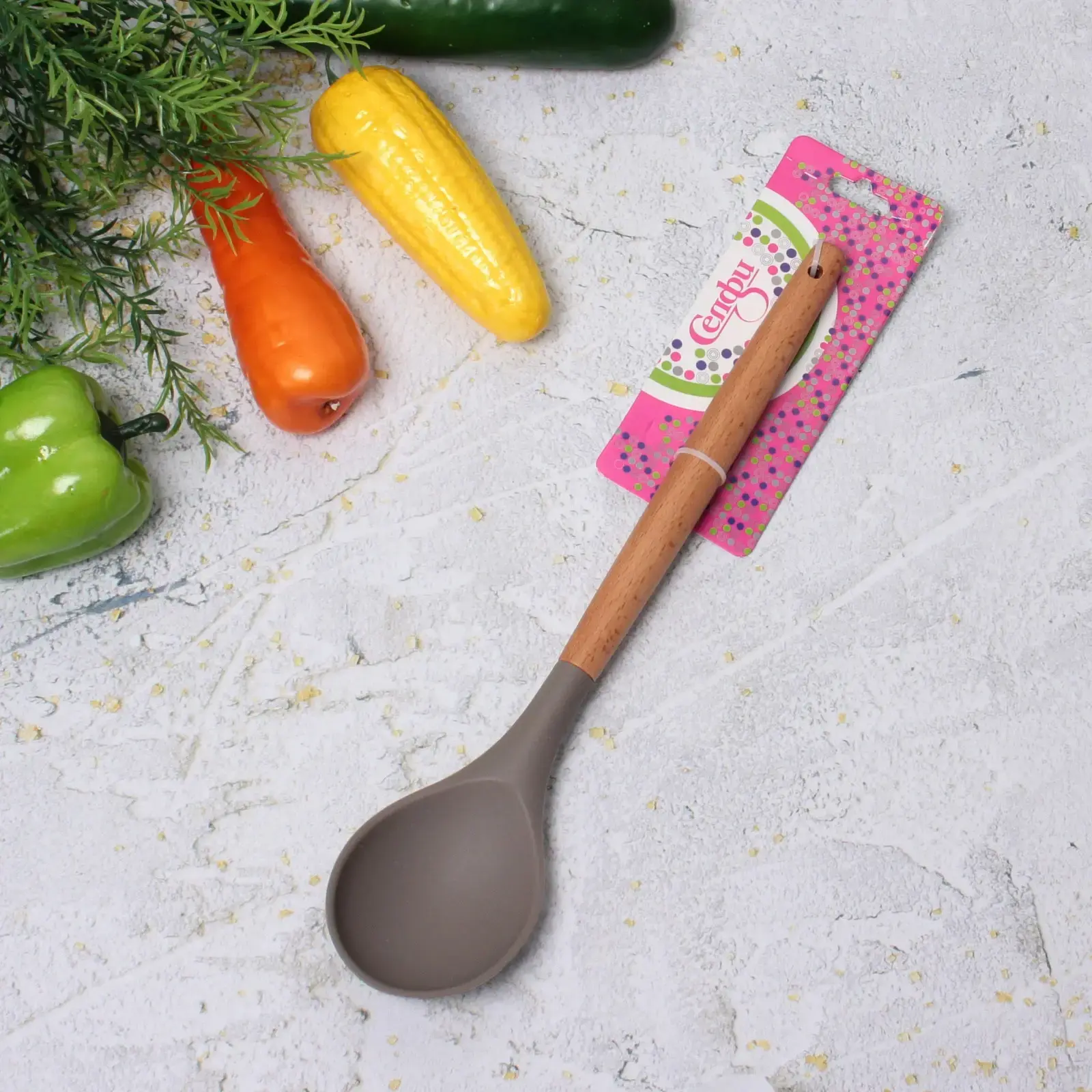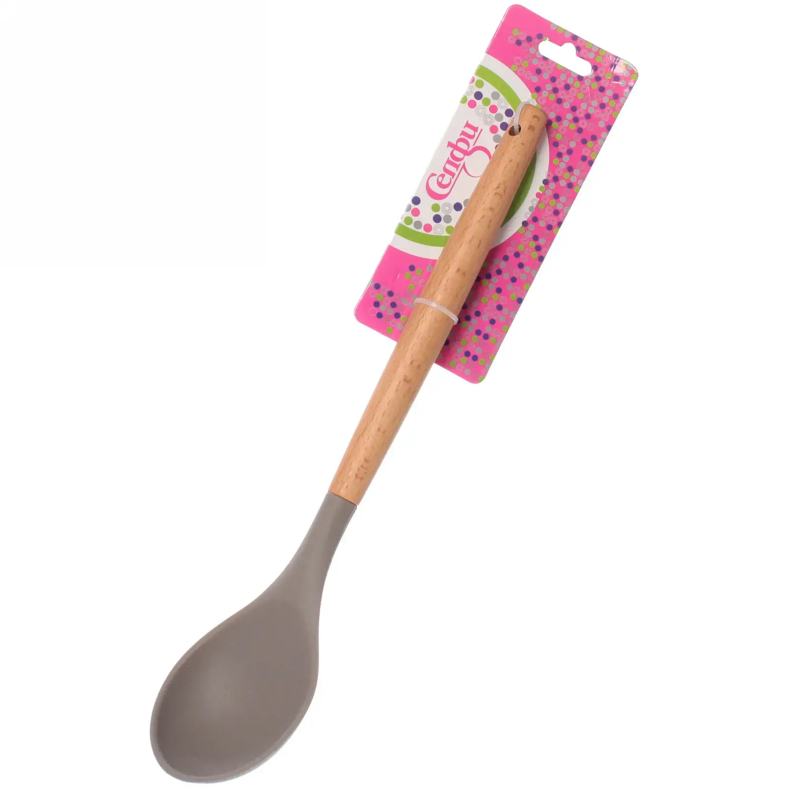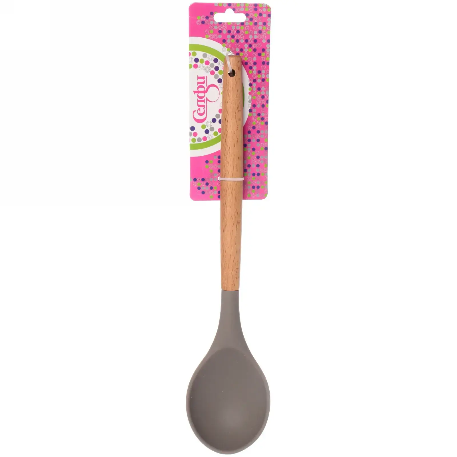 Ложка кухонная силиконовая «Modern kitchen» с деревянной ручкой, 30 см, для безопасного перемешивания