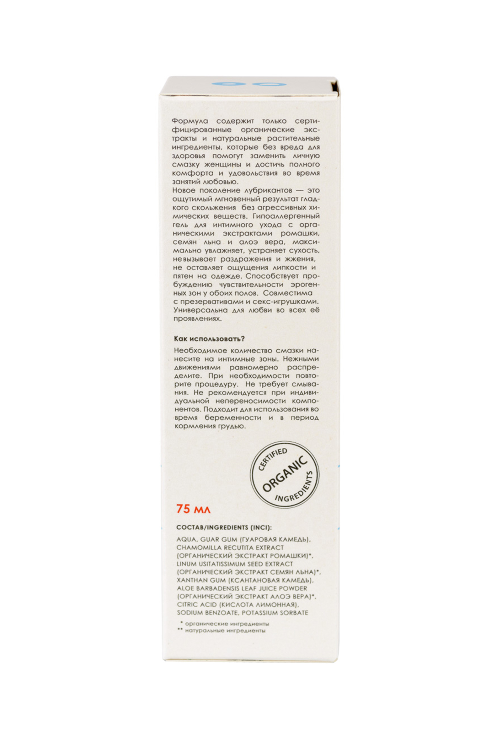 Объем 75 мл – это удобно для домашнего использования и путешествий. Материал упаковки мягкий пластик, дизайн выполнен в минималистическом стиле с экологичным подходом. Этот продукт способствует улучшению ощущений, делая интимную жизнь ярче и насыщеннее благодаря натуральной формуле без агрессивных компонентов.