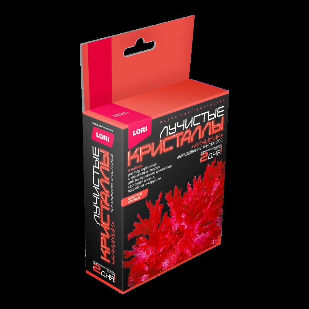 Набор оформлен в яркой упаковке с изображением красных кристаллов, что делает его привлекательным для детей. Коробка имеет прямоугольную форму и содержит пластиковую ёмкость с красной жидкостью, две белые палочки и пластиковую тарелку для эксперимента. Инструкции по использованию четко описывают процесс и меры предосторожности, что делает его безопасным и доступным для юных исследователей.