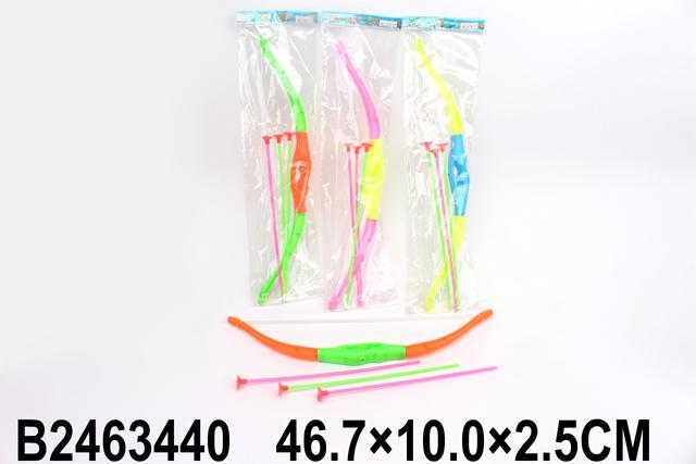 Размер упаковки составляет 46,7 см в длину, 10 см в ширину и 2,5 см в высоту, что делает его удобным для хранения и транспортировки. Лук имеет гладкую, изогнутую форму с небольшой эластичной тетивой, а стрелы окрашены в яркие цвета, что добавляет элемент веселья в игру.