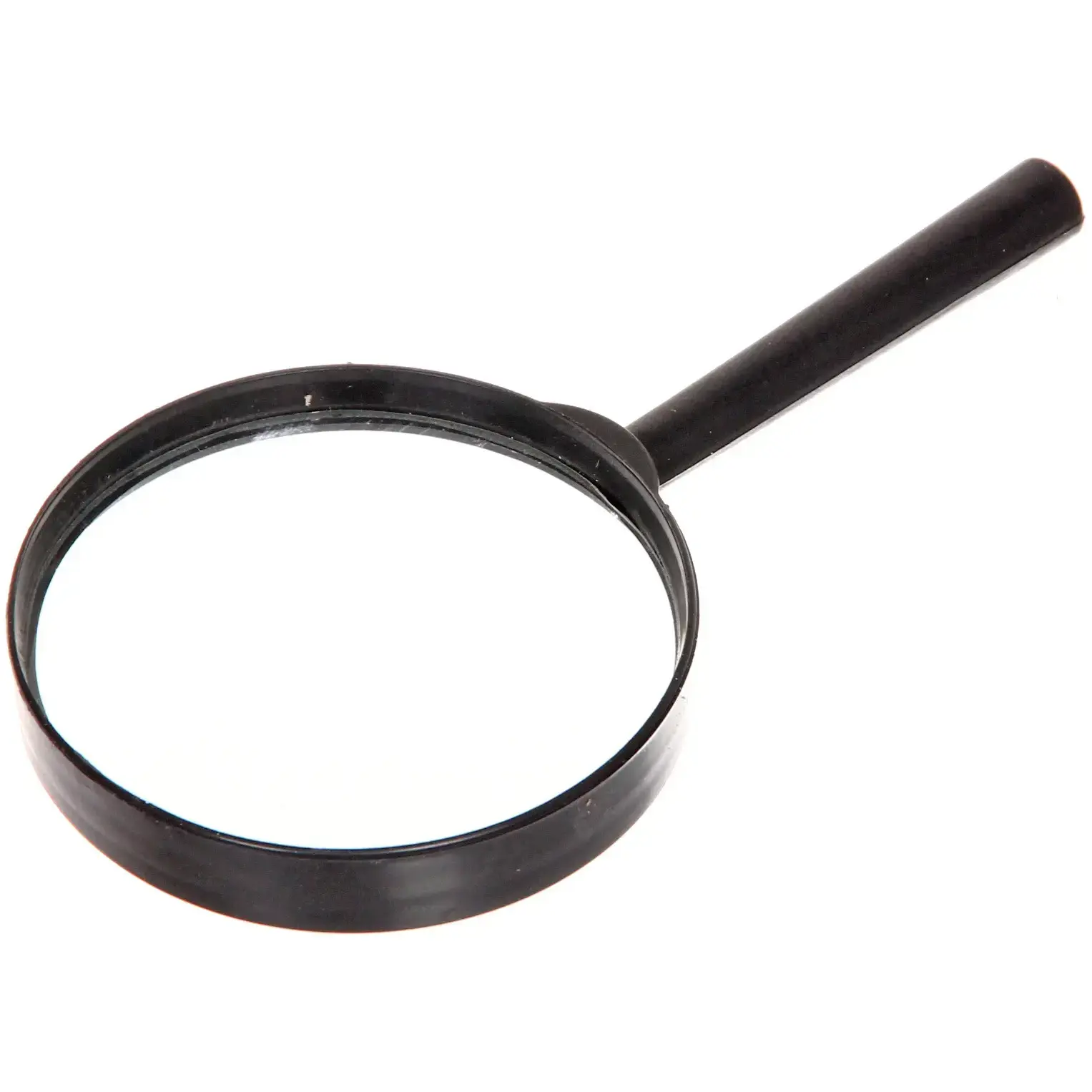 Лупа увеличительная 75 мм с ручкой, пластик/стекло, черный цвет, для чтения и детальной работы