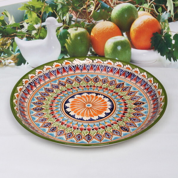 Ляган идеально подходит для сервировки различных блюд, будь то салаты, закуски или основные блюда. Его плоская форма позволяет удобно размещать еду, а яркий цвет привлекает внимание и создает атмосферу праздника. Этот ляган станет отличным выбором как для повседневного использования, так и для особых случаев.